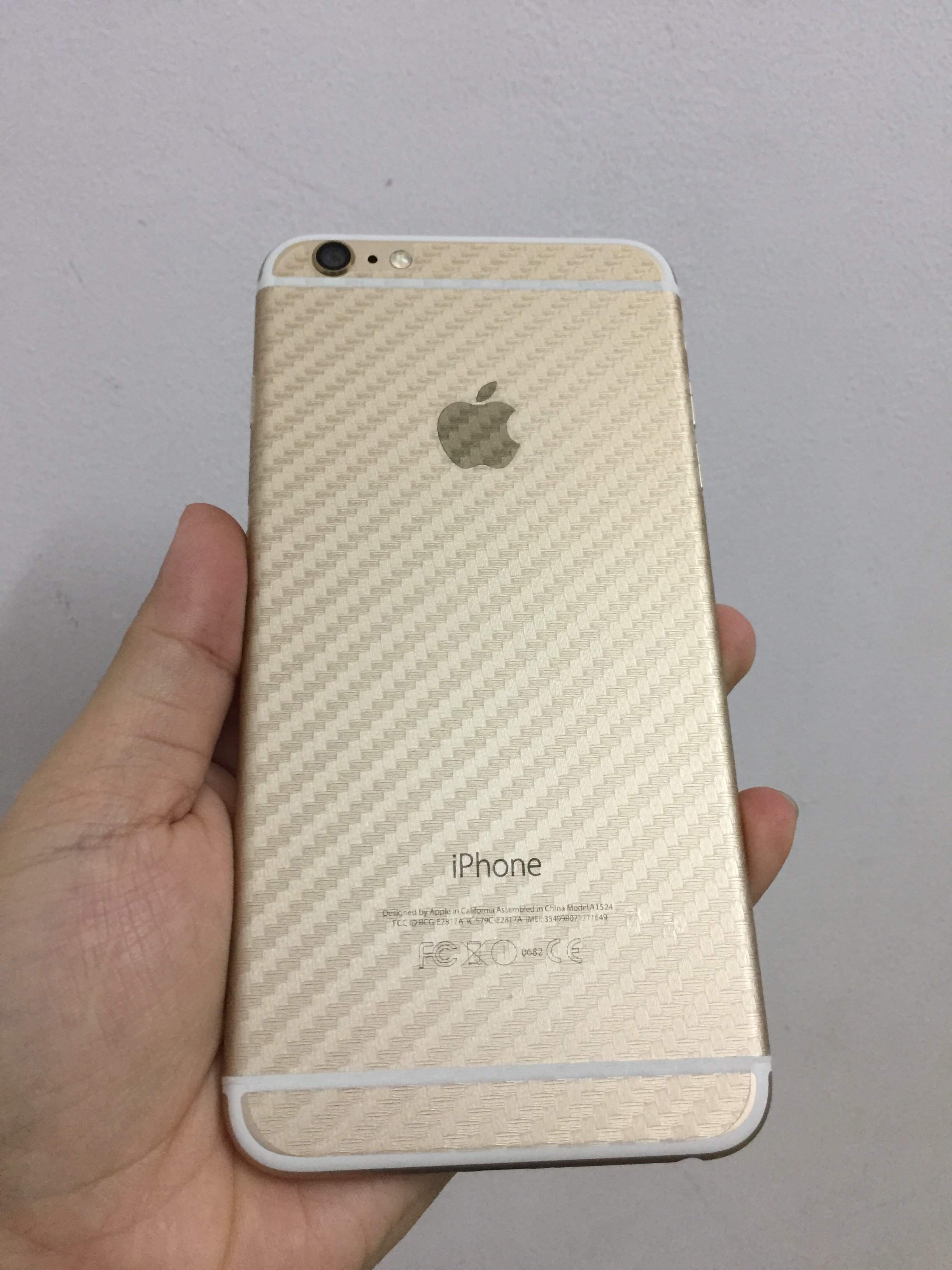 iPhone 6 gold plus quốc tế mỹ 16gb chuẩn zin, ngoại hình còn đẹp, dùng lâu có xước xác nhẹ tí k đáng kể góc trên bên trái(xem hình chụp) trước sau đã dán bảo vệ từ đầu. thông tin máy trùng khớp check ra đúng model. icloud thoát restore kích hoạt lại liền khi ok lấy. Vân tay còn rất ăn, phím home bấm êm. pin giữ kỹ còn ok lắm. Gd tại nhà riêng, ai k biết xem máy kiếm người rành đi chung cho an tâm và rõ ràng. Máy còn đủ phụ kiện.