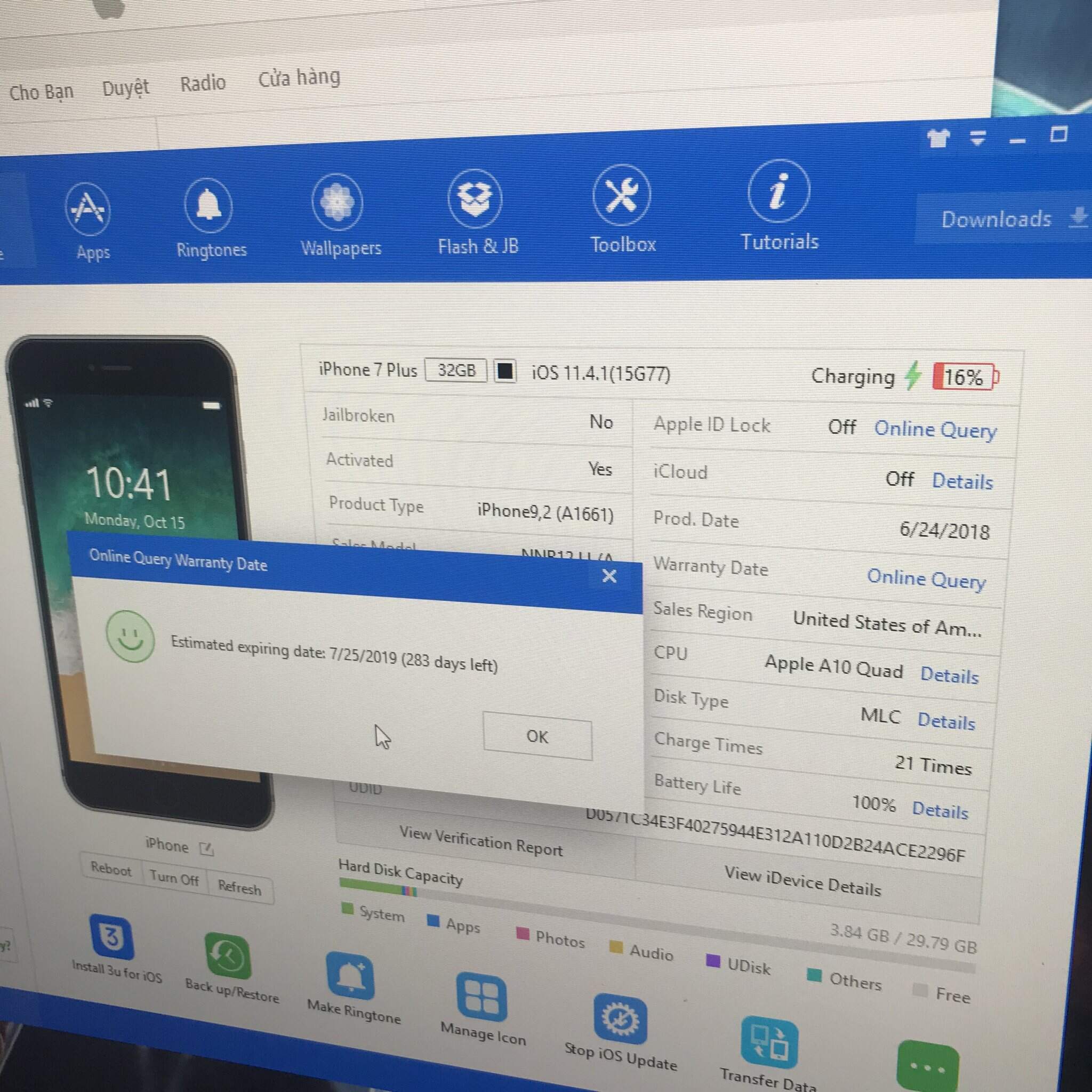 7 Plus Black zin keeng 32Gb còn bảo hành 7-2019