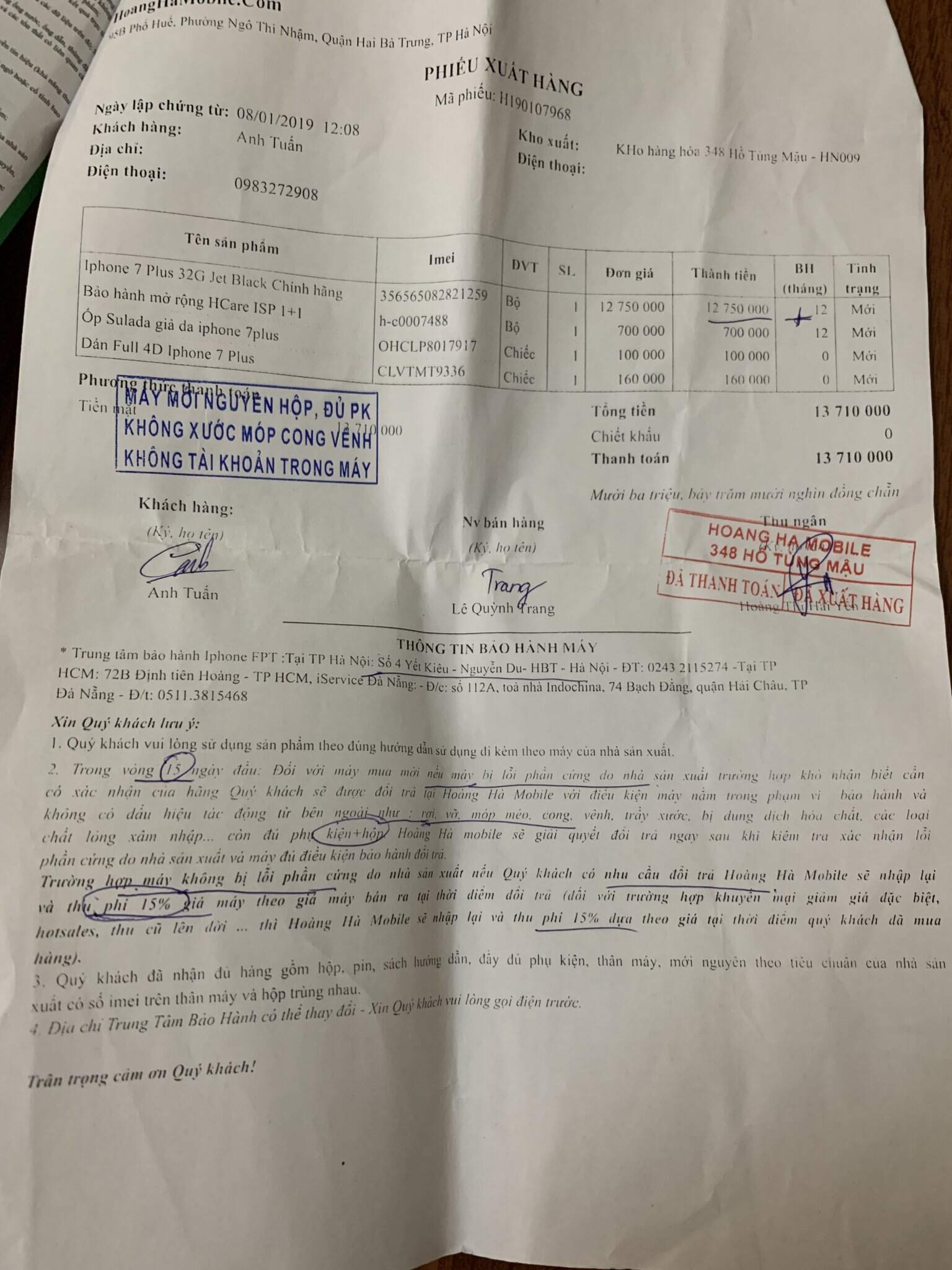 ‼️ Iphone 7 plus 32Gb bản Jetblack sang chảnh, chính hãng Vna bảo hành 1/2020, ISO 11, Fullbox ko thiếu thứ gì , hoá đơn mua bán tại Hoàng Hà ( đã mua thêm cả gói bh H-Care ) . Máy đã dán full PPF đẹp ko vết muỗi đốt)