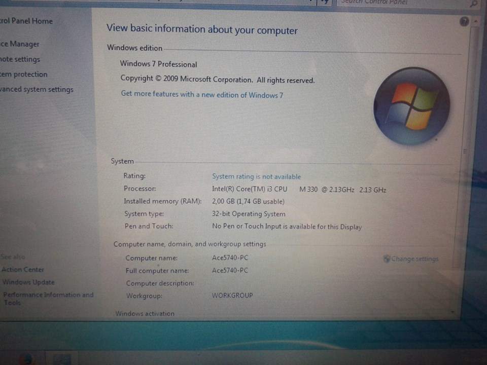 Acer ASPIRE 5740 coi 3 ram 2gb mà 15,6 inc ổ 320 gb