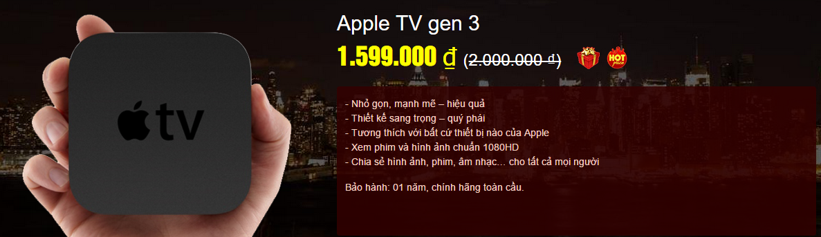 Apple TV gen 3 : 1.599.000 Đ