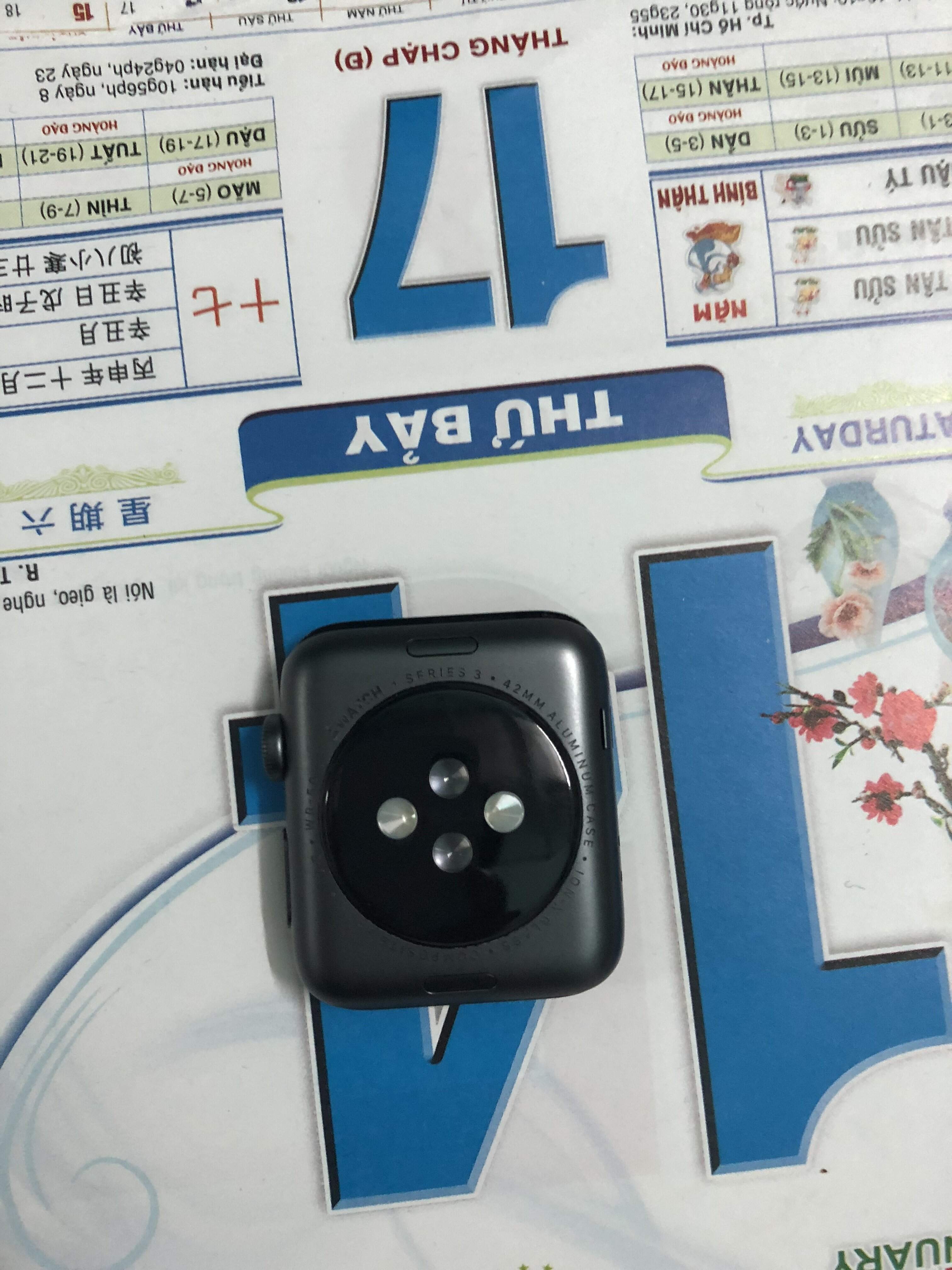cần bán cái apple wacth series 3 size 42 mm,,,funbock màu đen như hình...hàng thị trường singapo,,,mình mua ỡ Hà Nam Mobile còn hóa đơn mua hàng và bh apple tháng 11,,,máy mới đẹp vì ít đeo...trầy trên ddầu tý xíu nhìn kỷ mới thấy..fụ kiện funbock zin theo máy còn mới vì ít dùng..:xem hình đánh giá...máy đẹp,như hình giá 7t4 cho e máy chất.ae nào chê mất ,hay co láy ép giá thì kiếm máy khác mua giùm ok...mình ỡ bình tân...sori trên hình ae chick nhé...