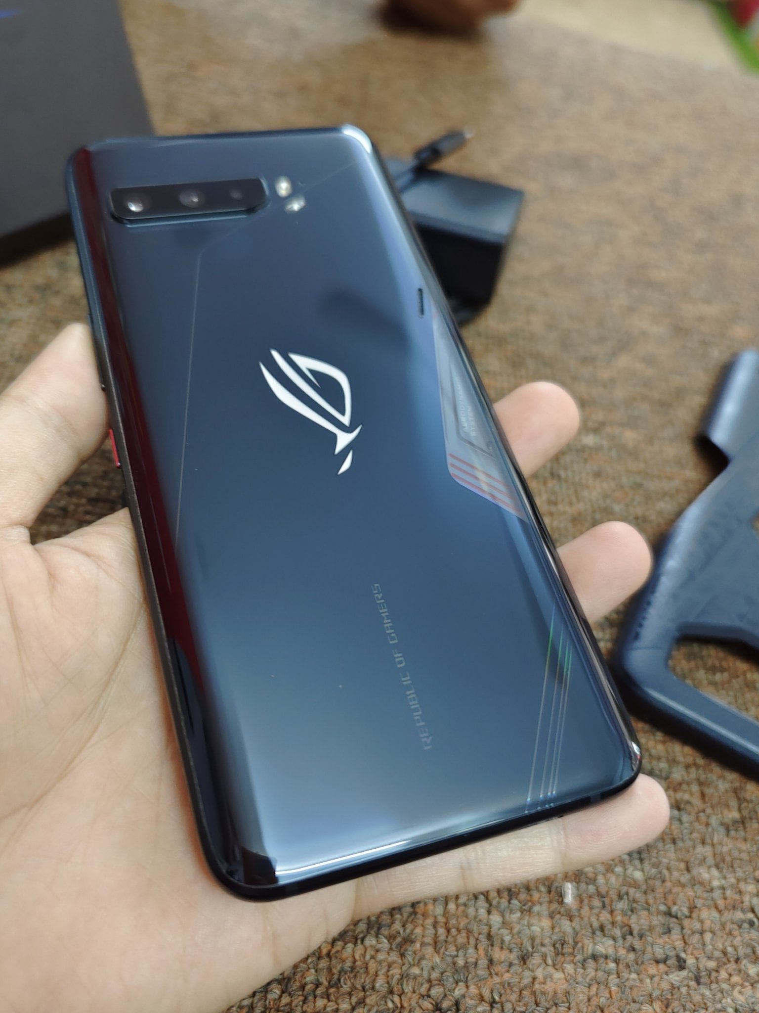 Asus Rogphone 3 bản chính hãng ram 12/512gb snap 865 plus fullbox đầy đủ phụ kiện ( Hộp , sạc cáp , ốp lưng , quạt gió , rắc chuyển )