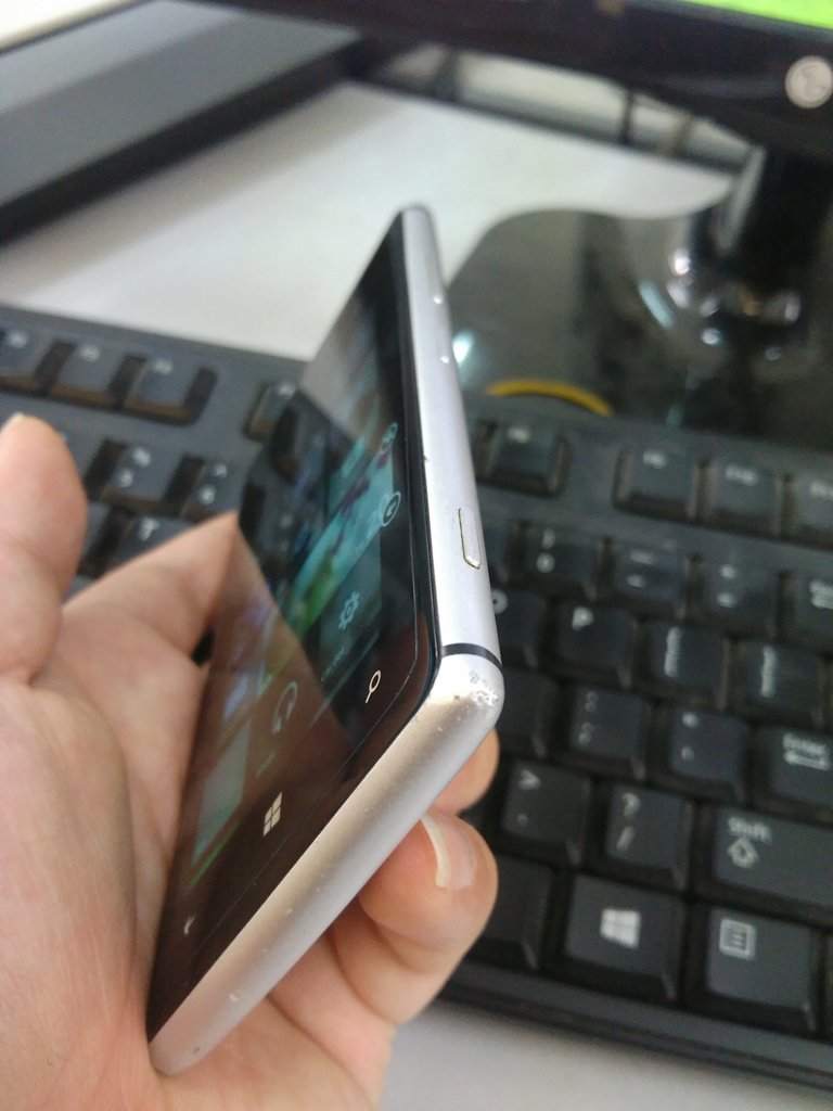 3. Lumia 925 xám, hàng VN trước mua ở TGDD, màn sáng đẹp và lưng không xước do dùng ốp, riêng 4 góc cấn móp như hình, giá 900k(đã bán)