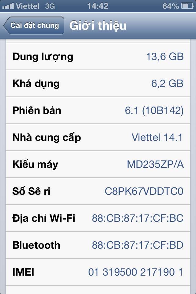 -đặc biêt vẫn IOS 6.1 như lúc mới mua cự hiếm luôn