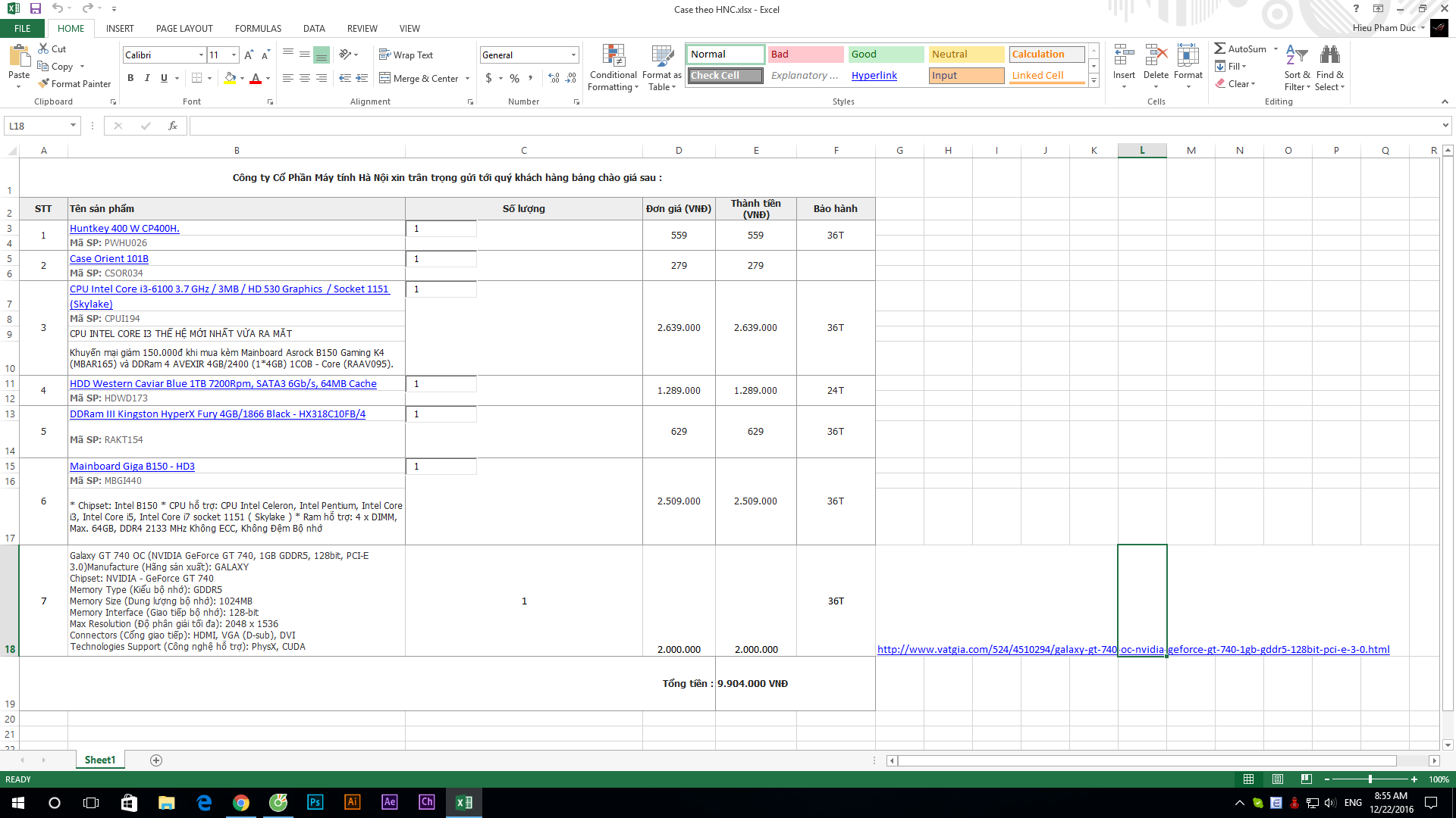<Có báo giá HNC mới nhất cho các bác so sánh ạ >