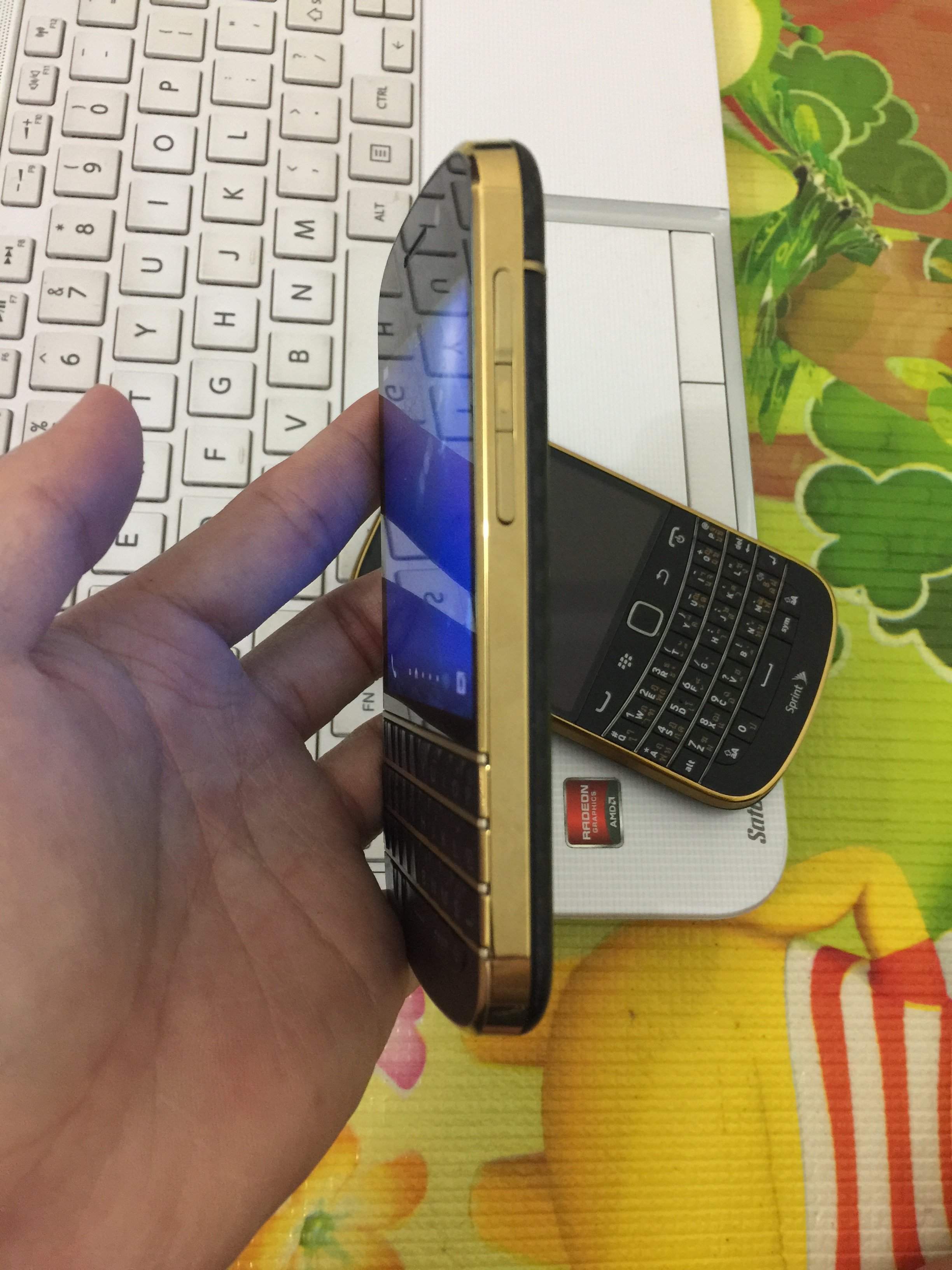 -9930 mạng sprint độ vàng đen siêu đẹp: máy đã dán cường lực, phụ kiện sạc cáp, giá: 800k