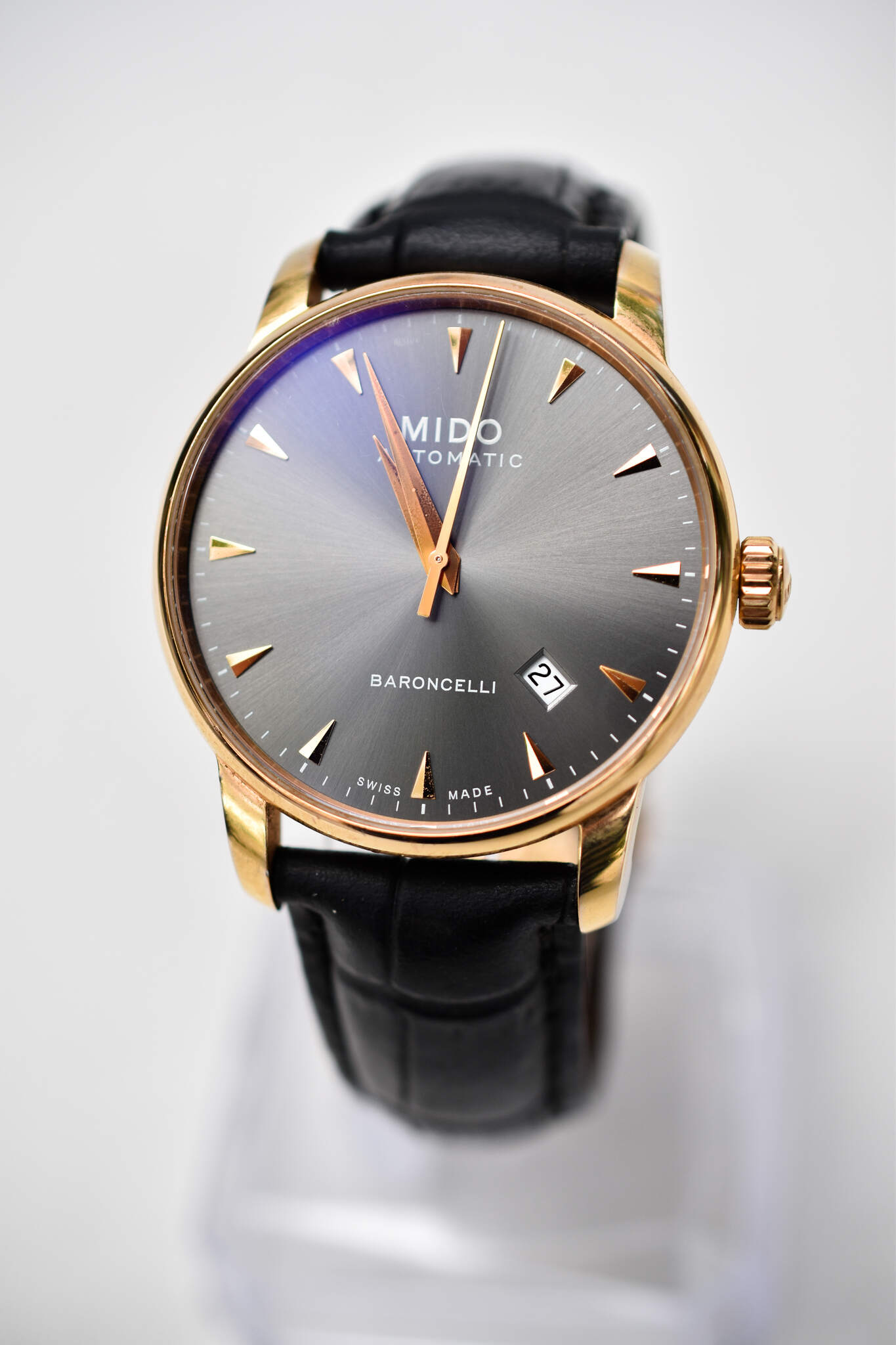 Thương hiệu : Mido LABEL : Swiss Made Máy : automatic CASE SIZE : 39mm Chất liệu : Steel (mạ pvd) DIAL Mặt : đen kim cọc nổi Kính : Saphire Tình trạng : rất mới đẹp all zin dây da đã thay GIÁ EM BÁN : 7 triệu