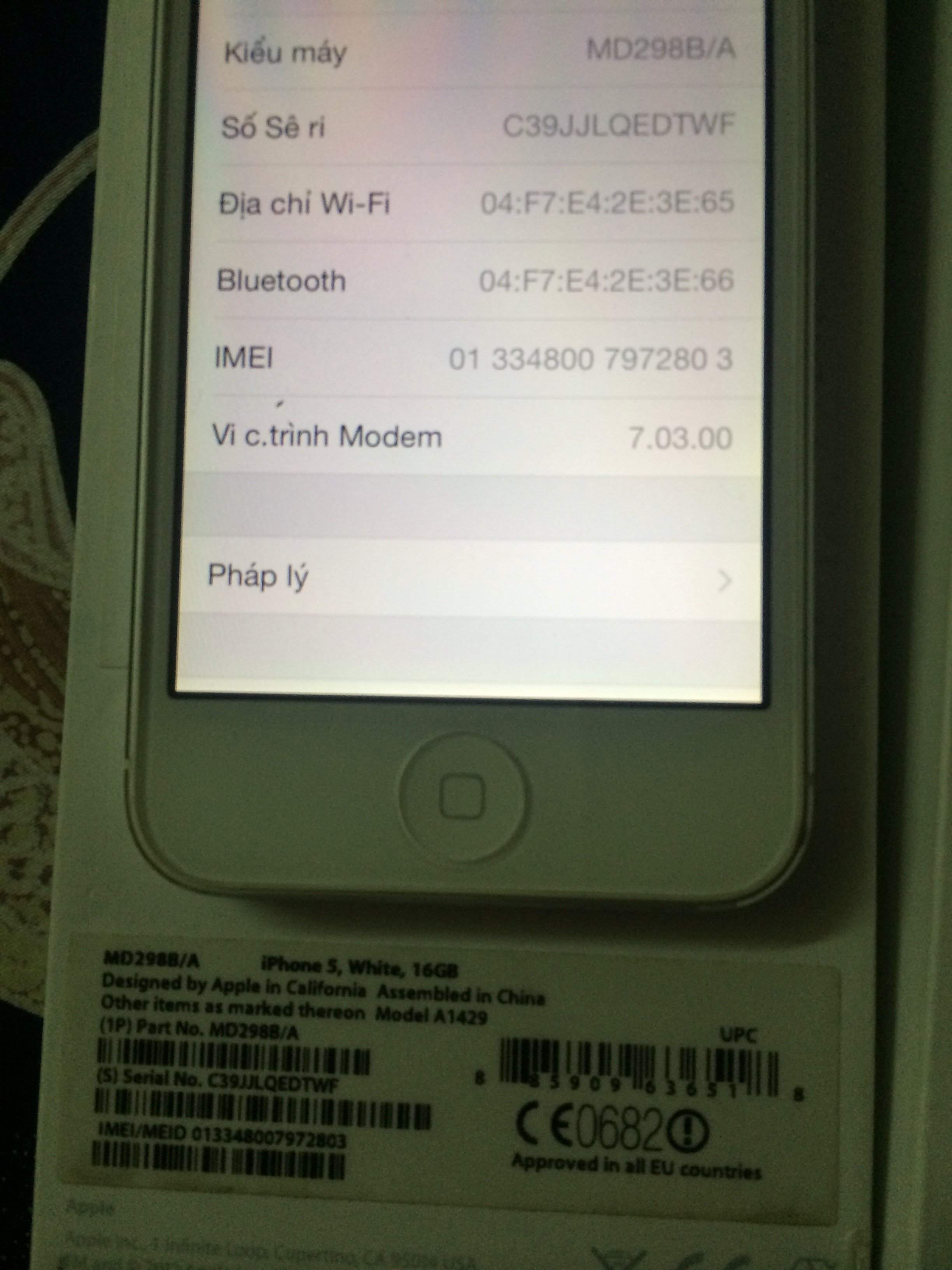 ip5 trắng hàng anh xách tay về dùng từ hồi mới . cực chuẩn ko lỗi lầm . full box trùng imei xịn chứ ko phải imei dán lại nhé . đầy đủ phụ kiện . có xước zăm tý ti và 2 vết trầy nhỏ nhỏ . tổng thể máy vẫn đẹp phải 97,98% . mua bán tại nhà bảo hành trách nhiệm đàng hoàng . liên hê XXX