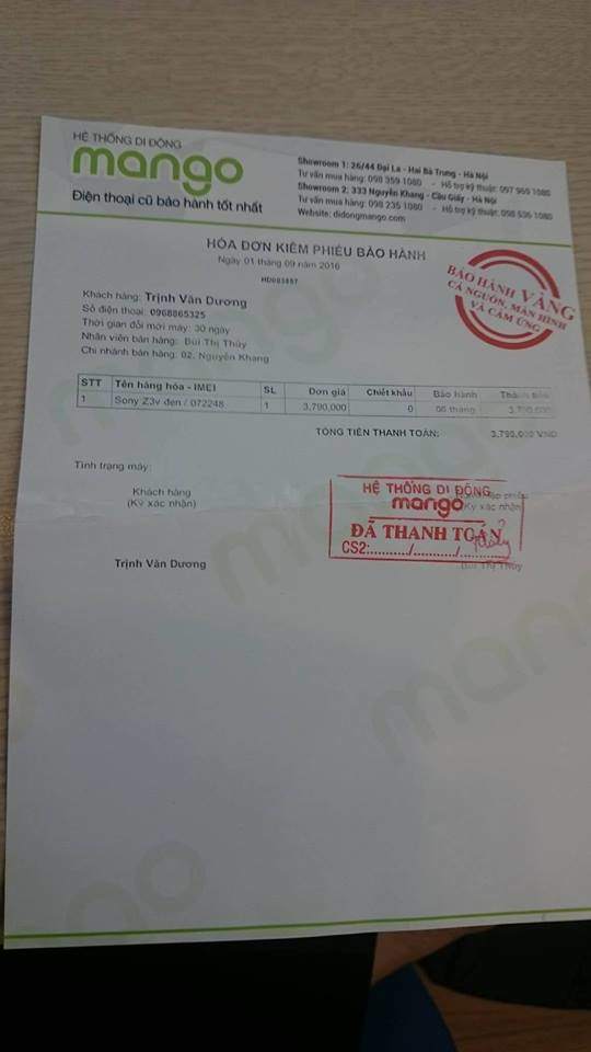 cần bán 1 z3 bản V như mới . còn giấy tờ tem bảo hành đầy đủ tại dd Mango. anh em nào cần liên hệ XXX
