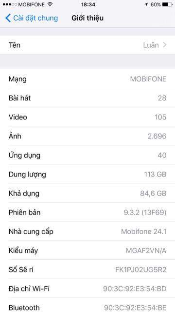 - Kiểu máy MGAF2VN/A hàng Việt Nam