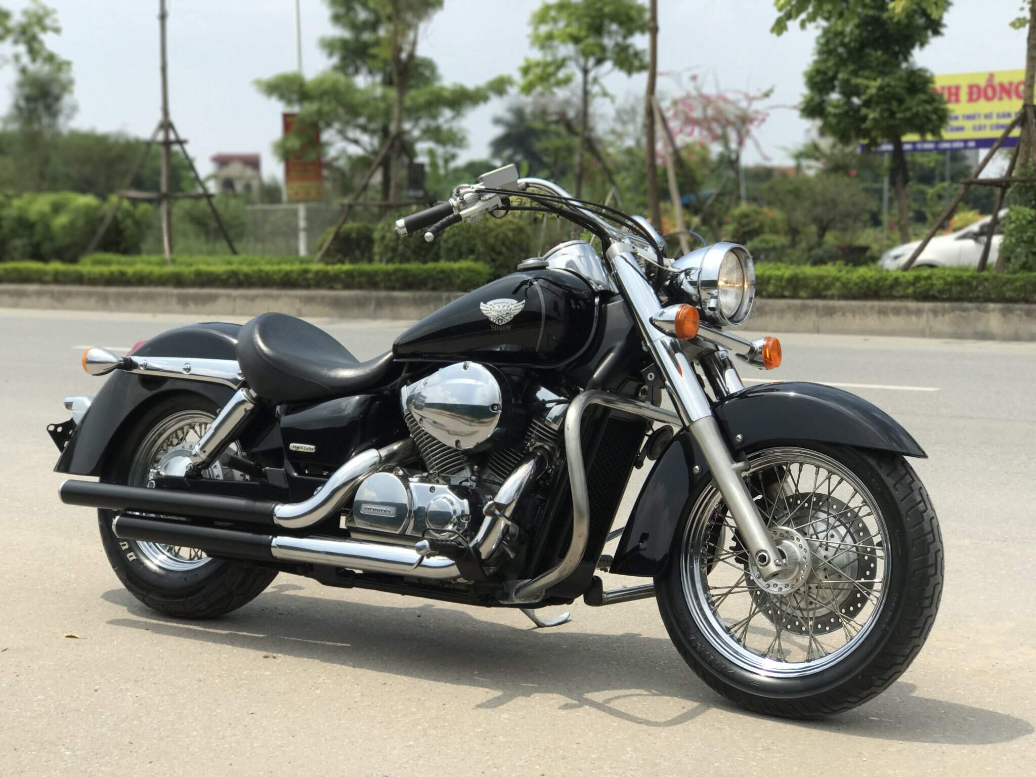 Đó là tôi đang mô tả chiếc Honda Shadow Phoenix mới cập bến Phuclaimotorcycle. Bóc nylon ra hốt hoảng với phần sơn đen gin toàn bộ. Chủ xe cực kì giữ gìn, mua xe thời hoàng kim biển số 4 số, nay đã được sang tên chính chủ Phúc Lai.