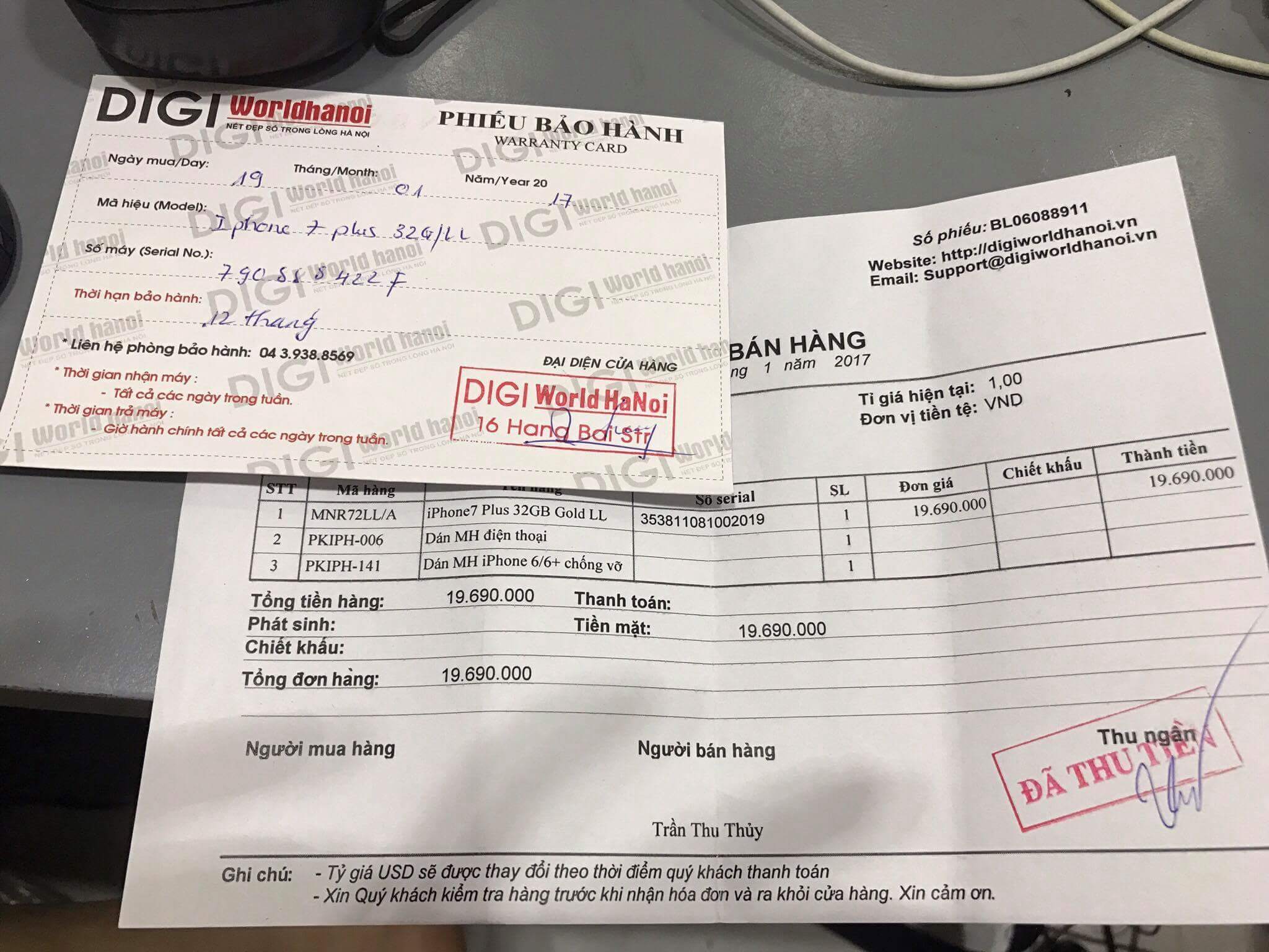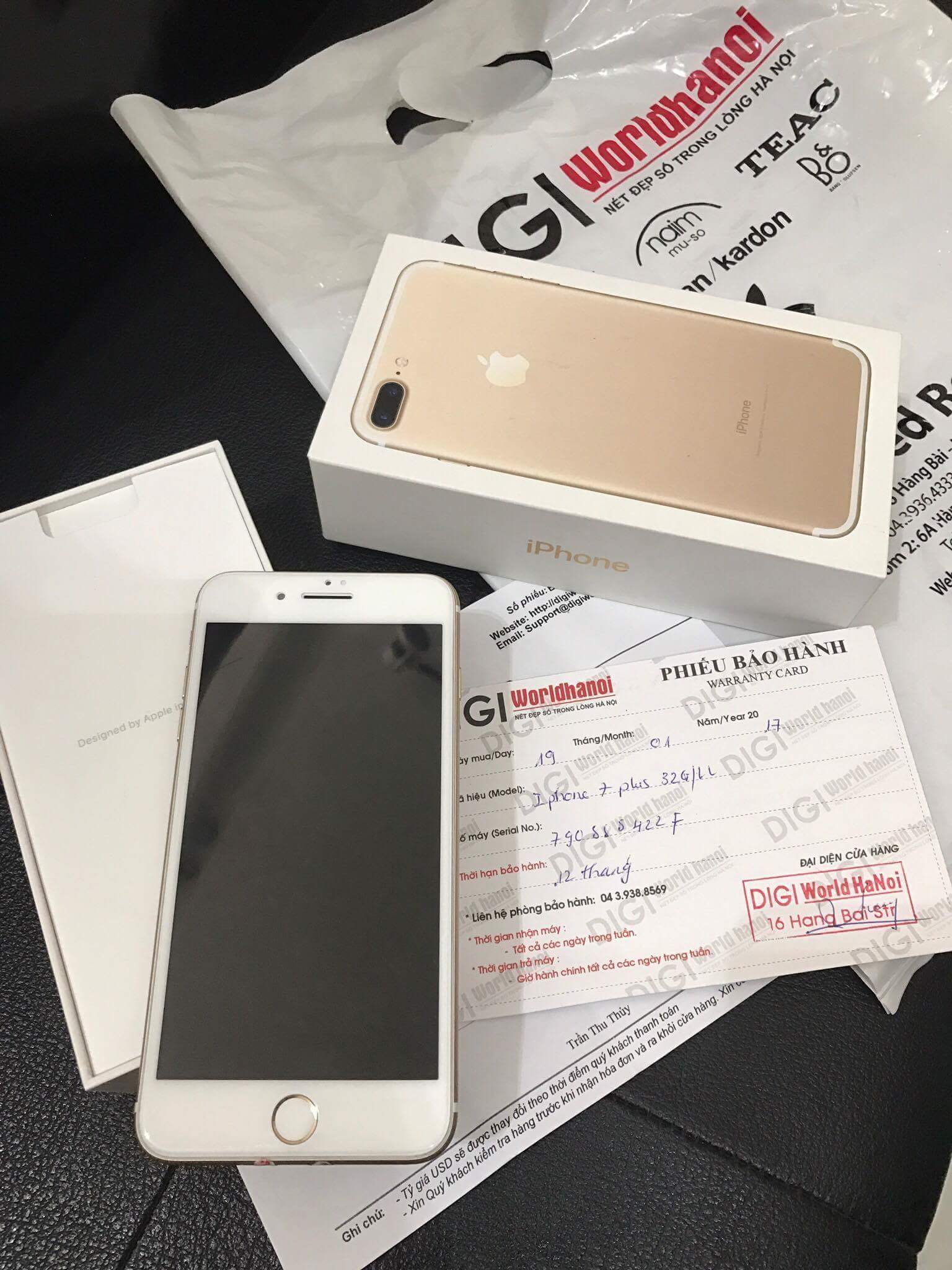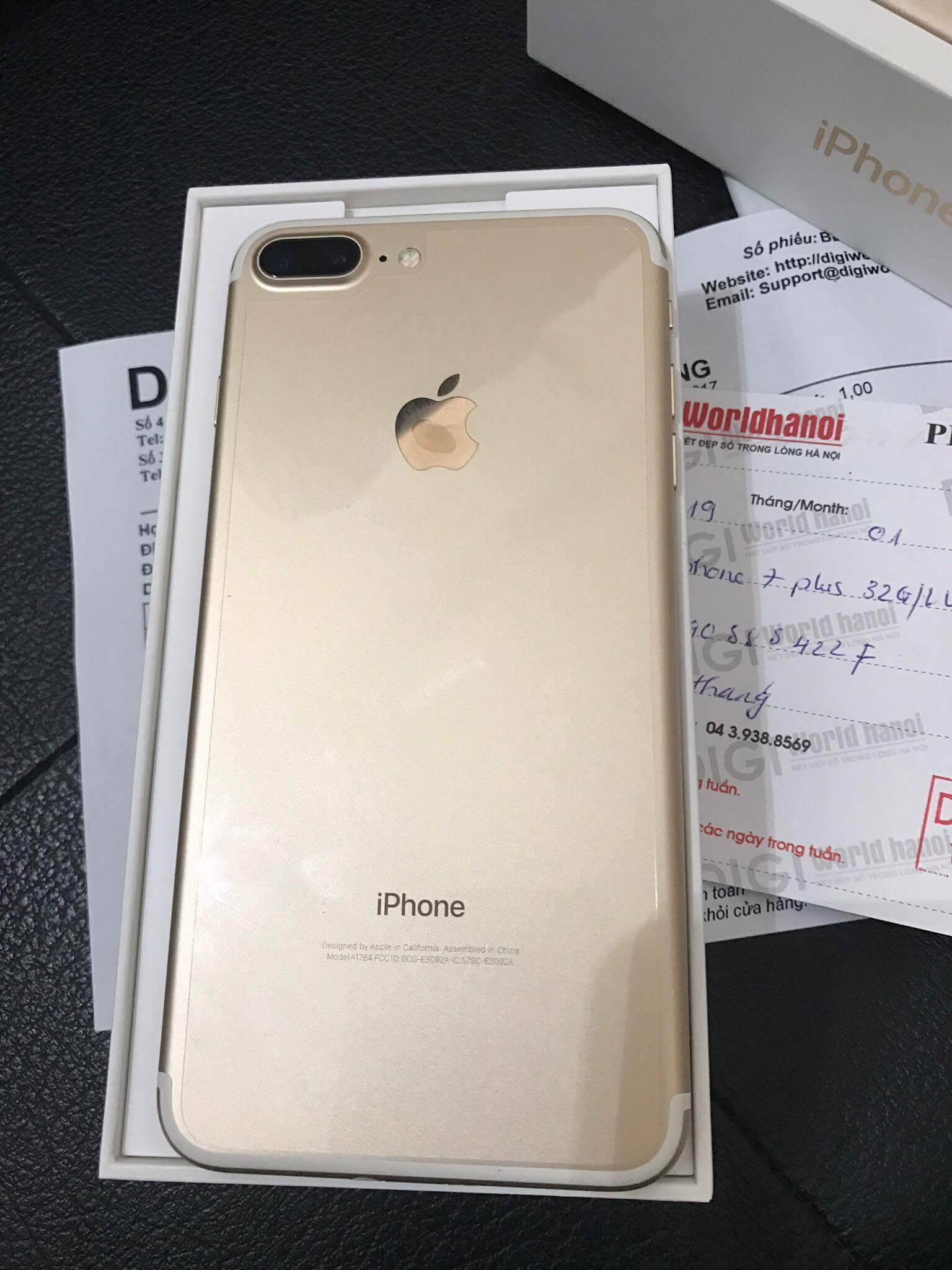 E cần bán Iphone 7 plus màu vàng Gold 32gb Quốc Tế, mua tại DigiworlHaNoi mới dùng lướt 6 tháng, e dùng rất cẩn thận có ốp và cường lực màn hình full bảo vệ máy ko 1 vết xước, còn đẹp long lanh 99%. Còn phiếu bảo hành. Đầy đủ phụ kiện.