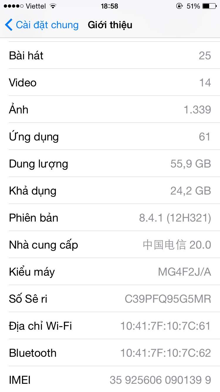 hình thức như hình, các bác tự đánh giá. Do e dùng ốp và dán nilong nên ko có xước xát j nhiều. máy dùng ổn định , k lỗi lầm gì, đang chạy ios 8.4.1 nên chỉ cần dùng tool là fix đc hết các lỗi mà ko cần jb.