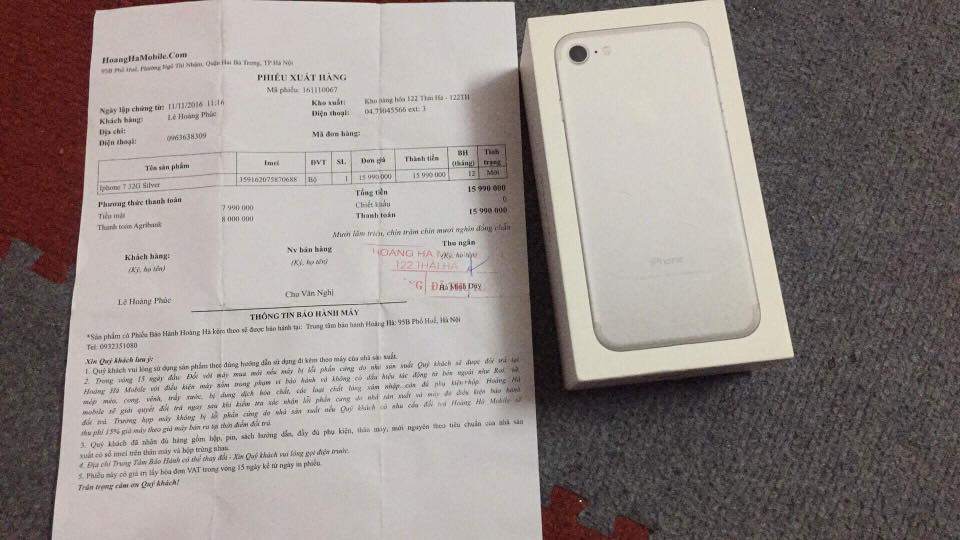 Cần bán ip7 silver 32gb full box mới 99% mua tại hoàng hà chính chủ còn giấy tờ mua bán như trong ảnh lúc mua 15tr990... muốn bán với giá 13tr5 có fix nhẹ ai mua liên hệ ngay XXX