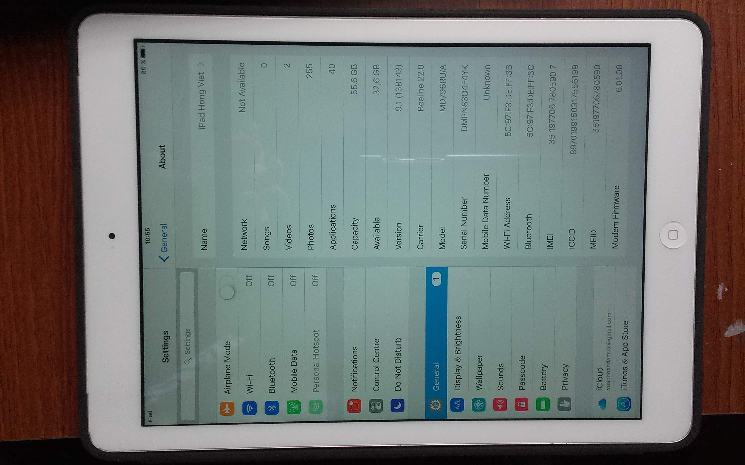 Bán ipad ipad air. Sim 4g. Mat sau hoi xuoc. Hinh thuc 95%. Sac cap zin. So dt lien he XXX. So 6 ngo 294/11 doi can.