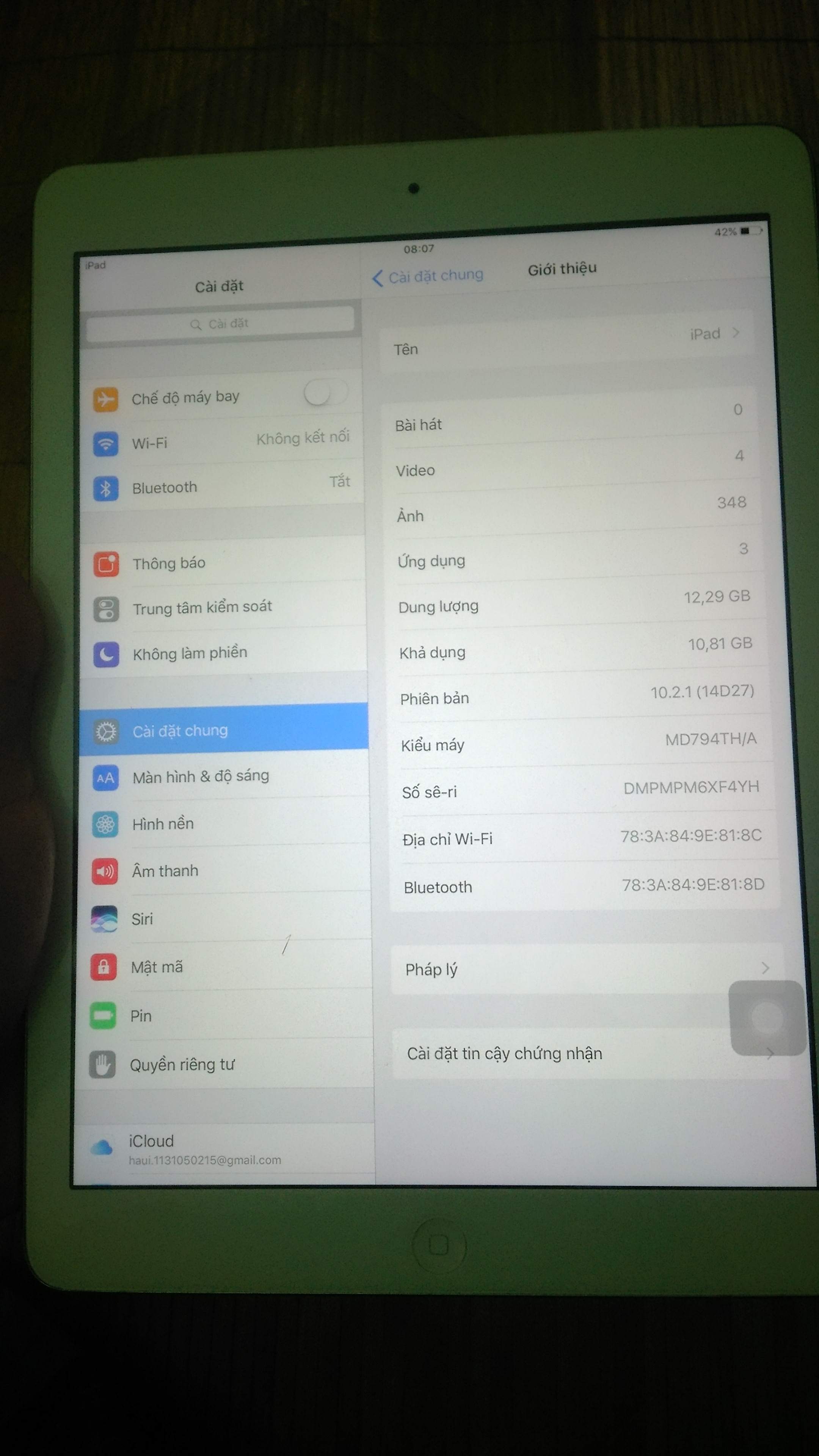 Bà chị mình cần thanh lý con ipad air mầu trắng, wifi , 16g ,này trong nhà nước .Trong đấy ko được dùng mạng , nên máy ko hiểu sao ko dùng đc 4g ạ, bà chị mình bảo vậy.