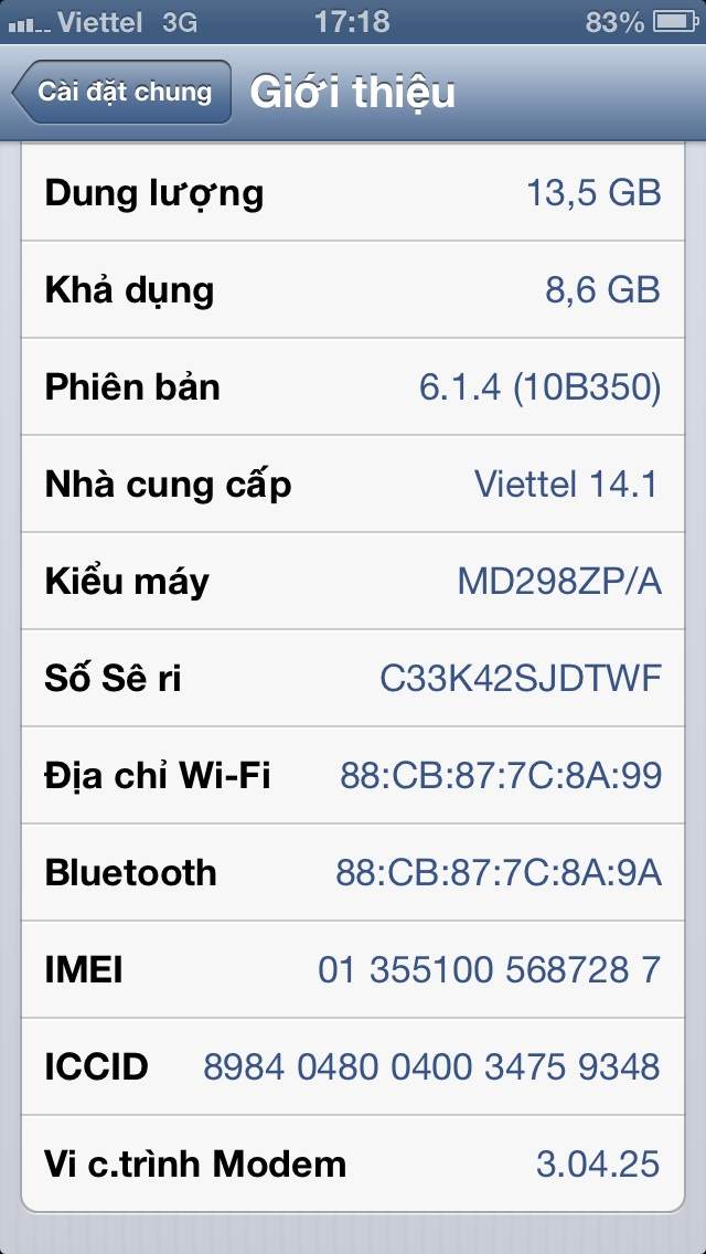 Máy Zp, đang ở ios 6.1.4 Full hộp, phụ kiện sạc cáp zin theo máy, k phải zin tặng luôn máy ạ, còn tai nghe thì chưa nghe lần nào luôn ạ, nguyên seal luôn