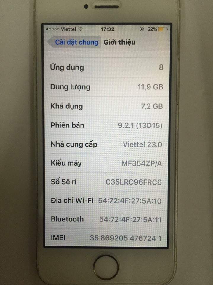 1.Iphone 5s-16gb hàng QT nguyên zin từ trong ra ngoài,vỏ zin trùng imei nên hình thức xước xát do không dán,dùng ốp,màn hình thì dán cường lực nên vẫn đẹp,đang chạy ios 9.2.1 mượt mà,pin trâu,vân tay nhậy không lỗi lầm gì,máy chỉ bị icloud nhưng đã ẩn dùng icloud khác bình thường,update thoải mái,chỉ không restore thì không bị làm sao bao giờ cả,cảm biến tiệm cận không hoạt động(khi nghe đt k tự tắt màn hình)
