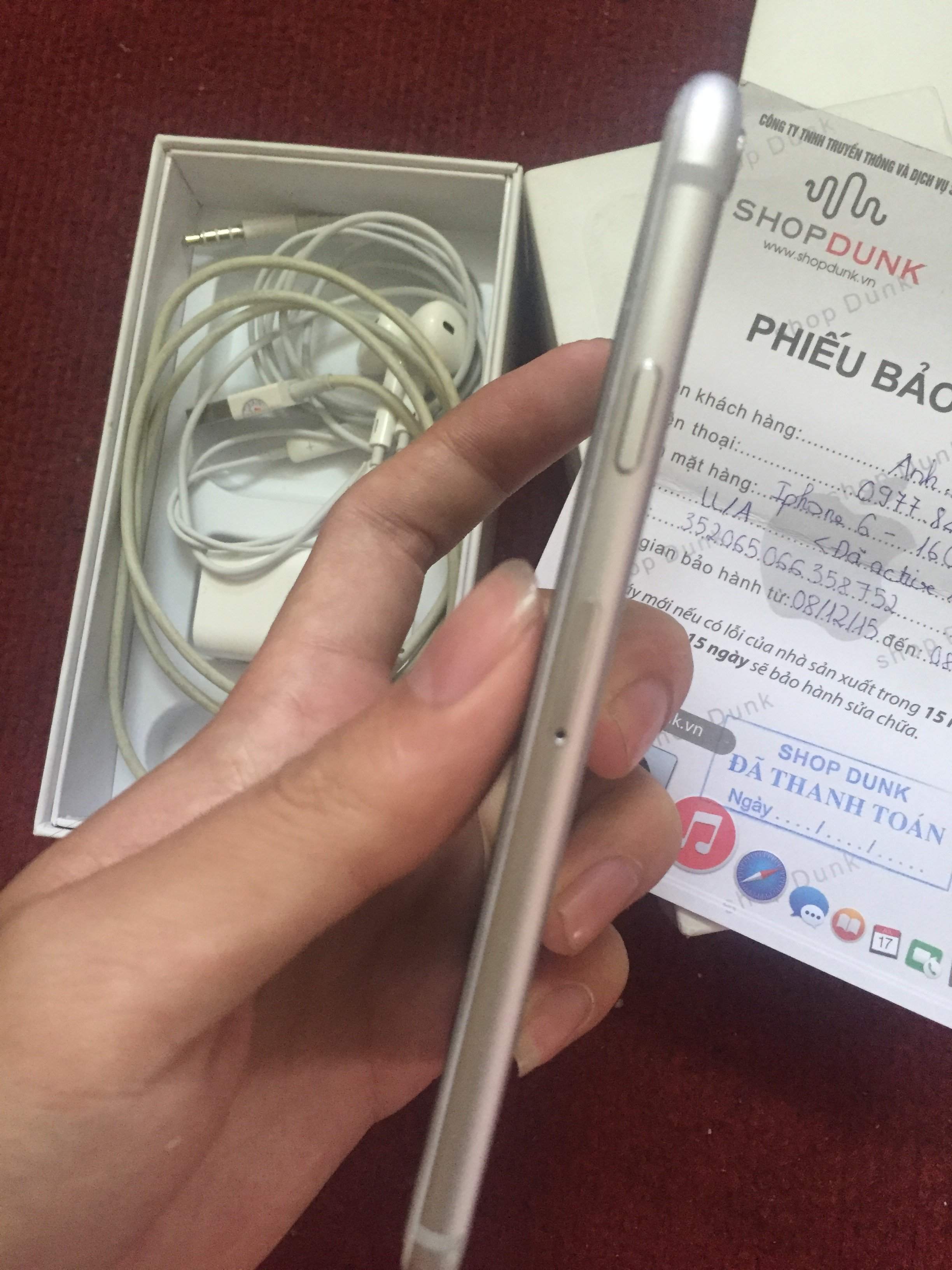 Mình cần bán chiếc iphone 6 16gb trắng máy mới mua đc 4 tháng, còn đầy đủ nguyên hộp sạc cáp tai nghe zin theo máy. Giấy tờ mua bán kèm bảo hành tại Shop Dunk đến 08/12/2016.
