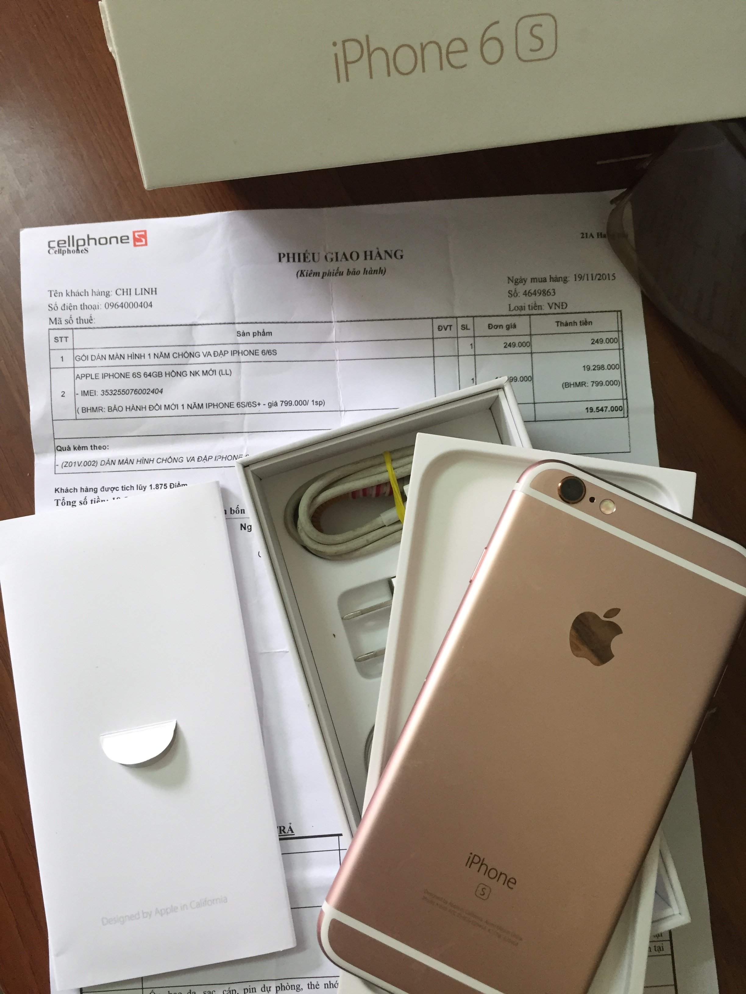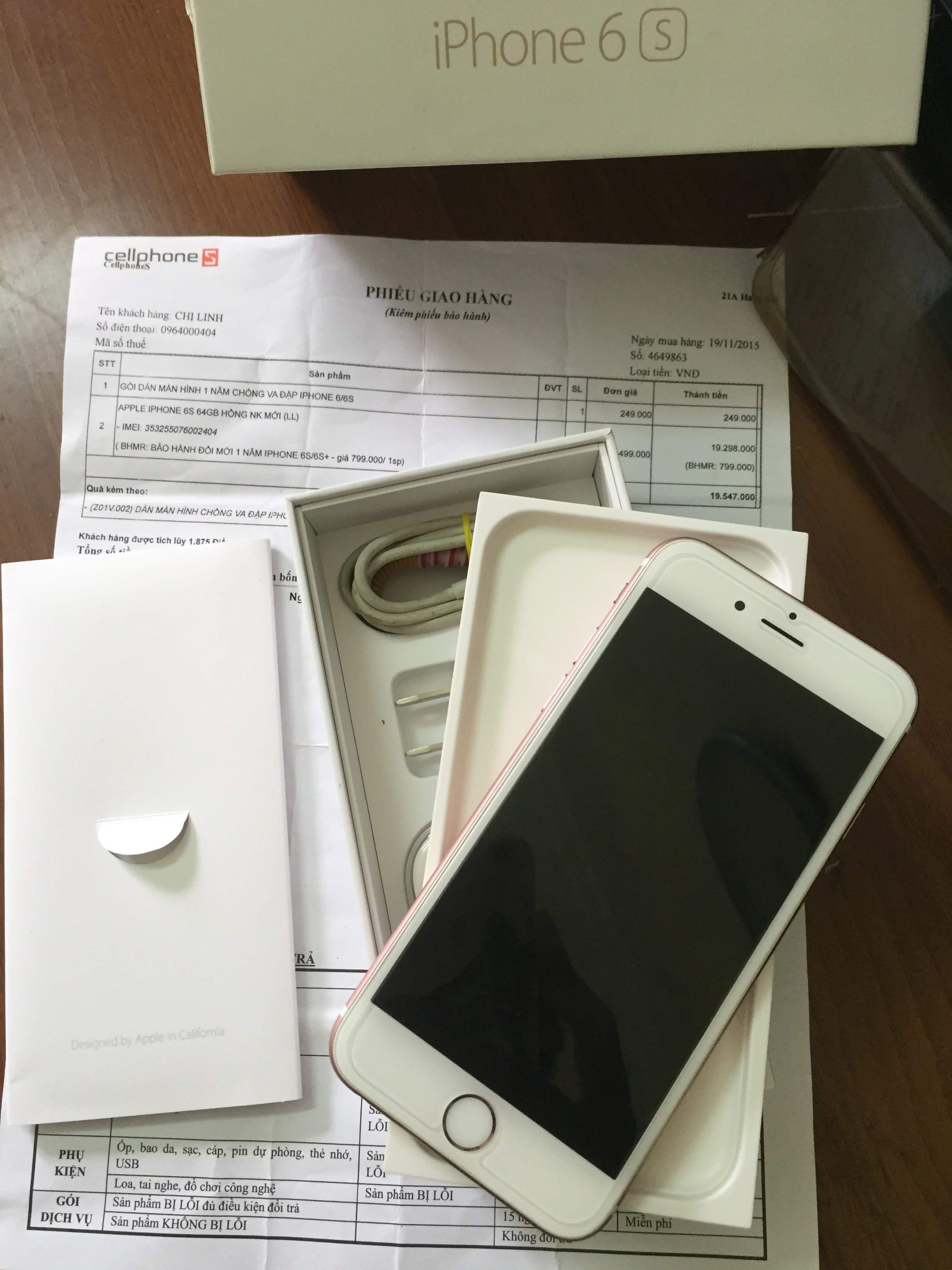 Mình có chiếc iphone 6s 64gb màu rose gold mua đập hộp tại CellPhoneS.