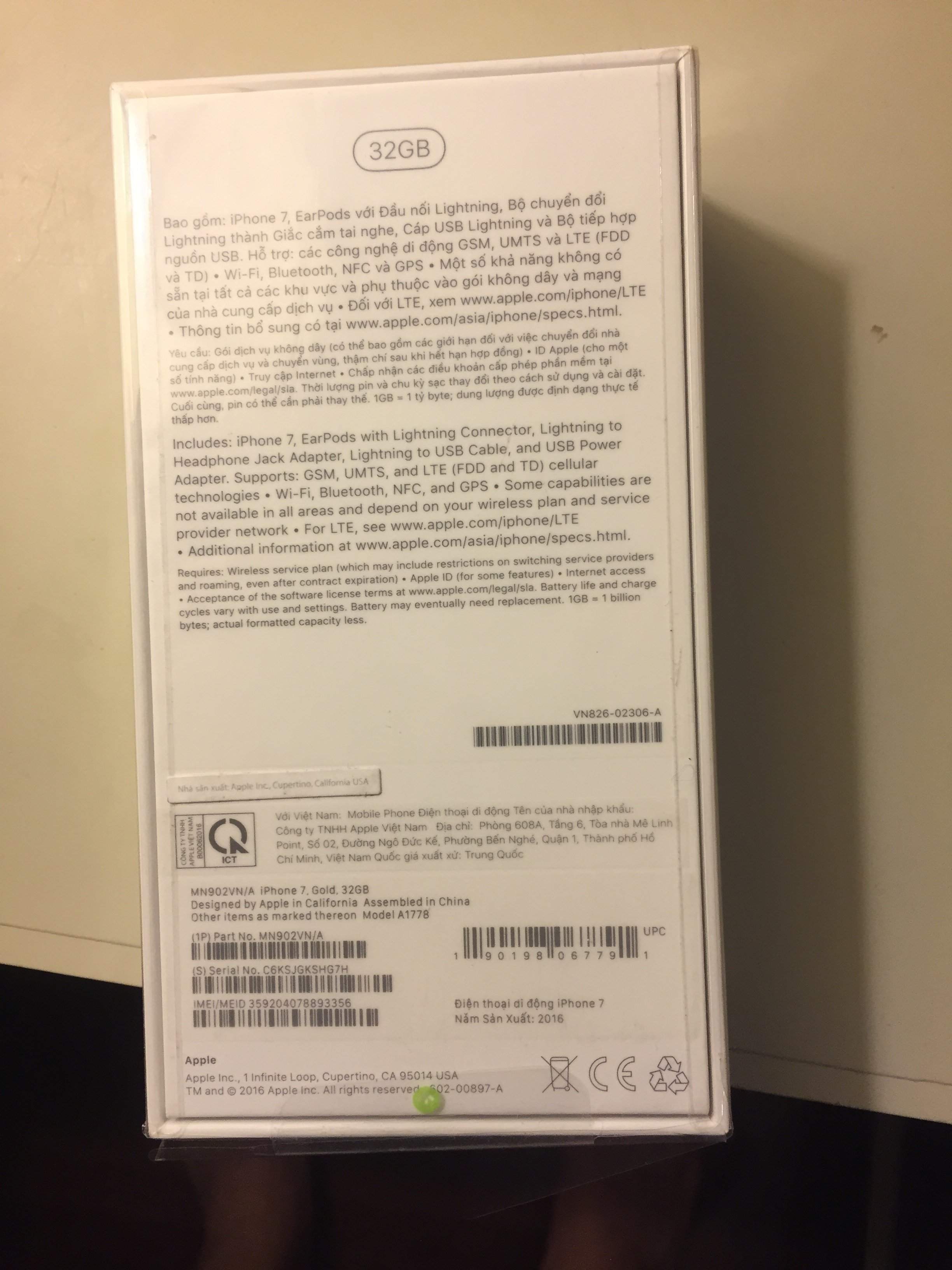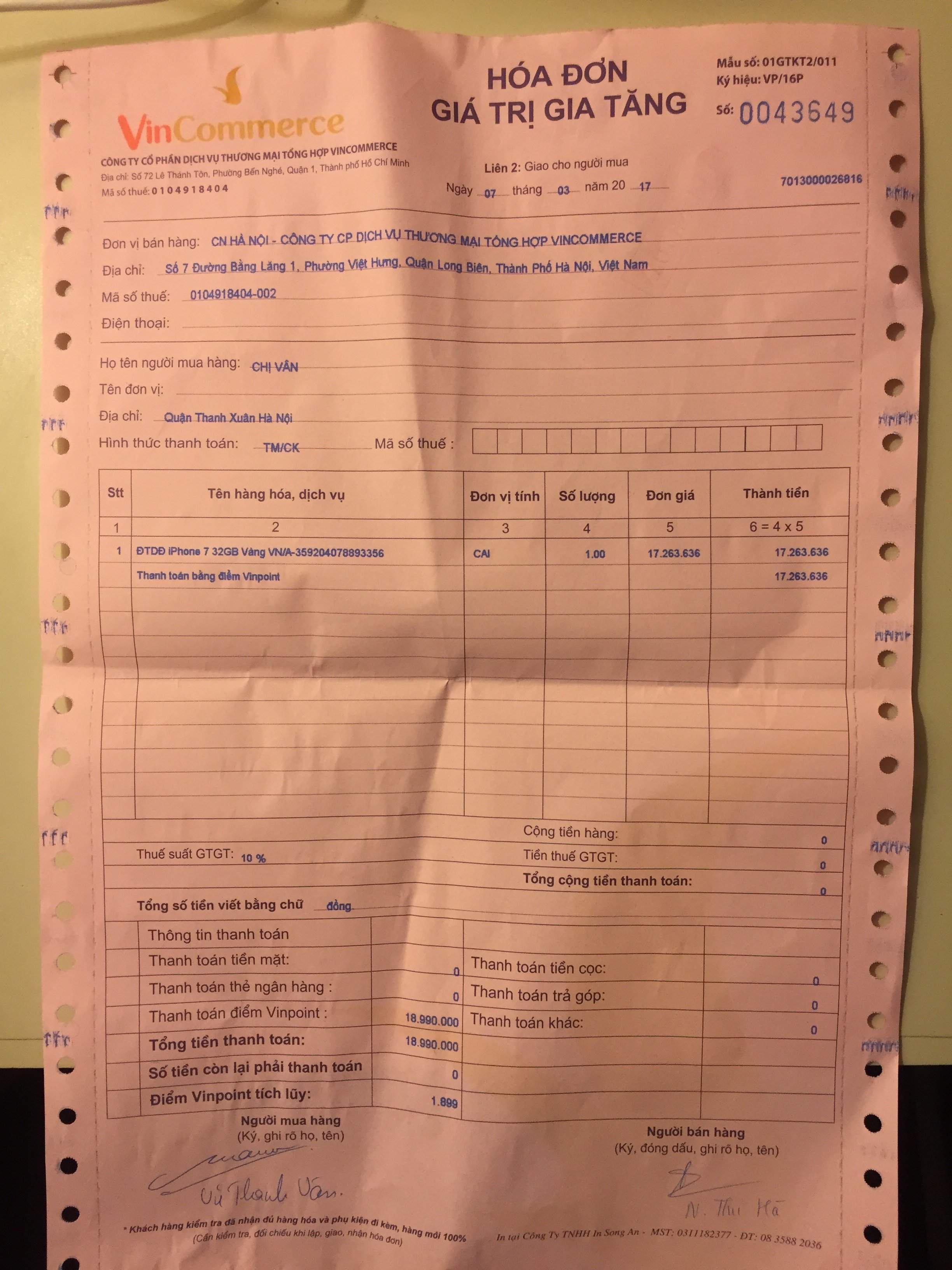 Mình đc Vinhome khuyến mại iphone 7 mầu vàng 32 GB chưa bóc seal. Có hoá đơn mua bán của Vincom. Giá bán 17,5tr.