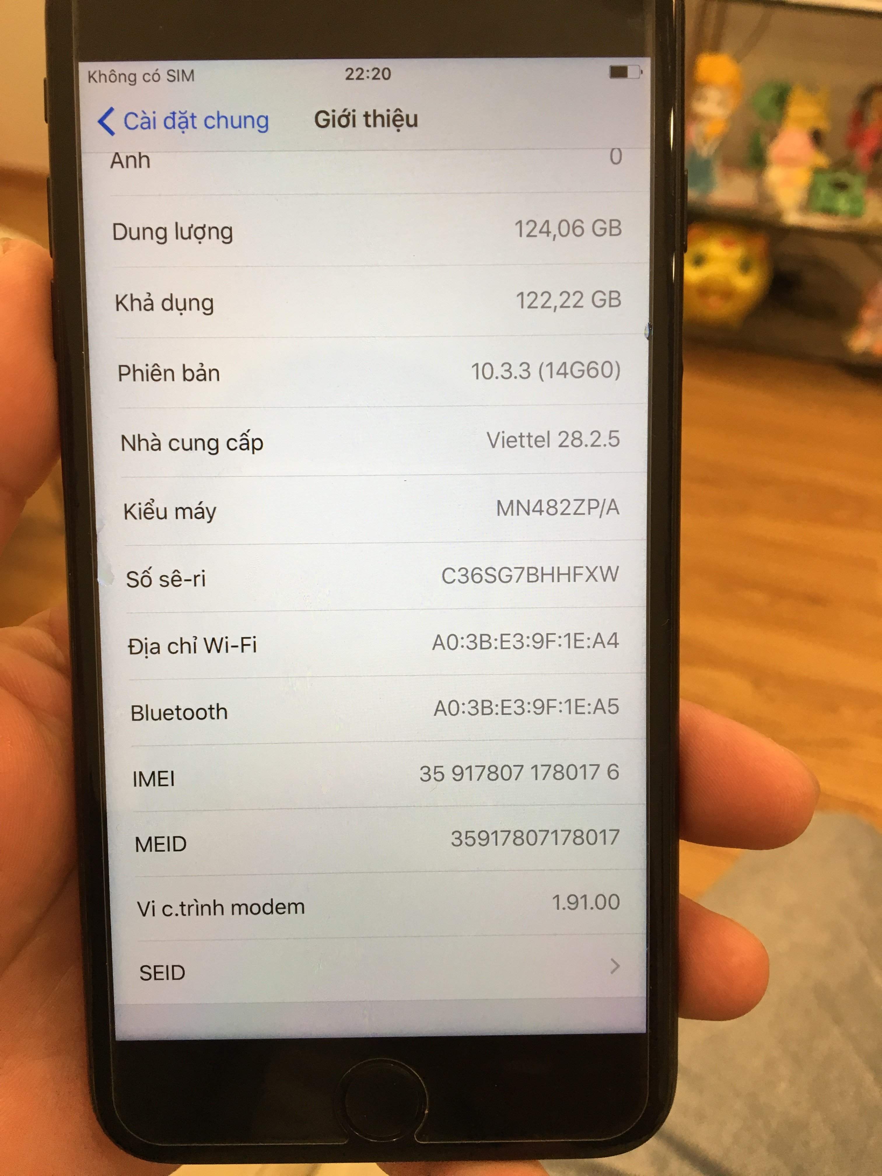 máy mình có hộp, pk sạc cáp zin và sách vở. Tai nghe mình làm mất rồi. iPhone 7 plus đen sần 128G; hình thức 99%, zin all bao test nước; ios 10.3.3 Mua bán tại nhà bao test nghiêm chỉnh 1 tuần. SMS 0986 mười ba 6161