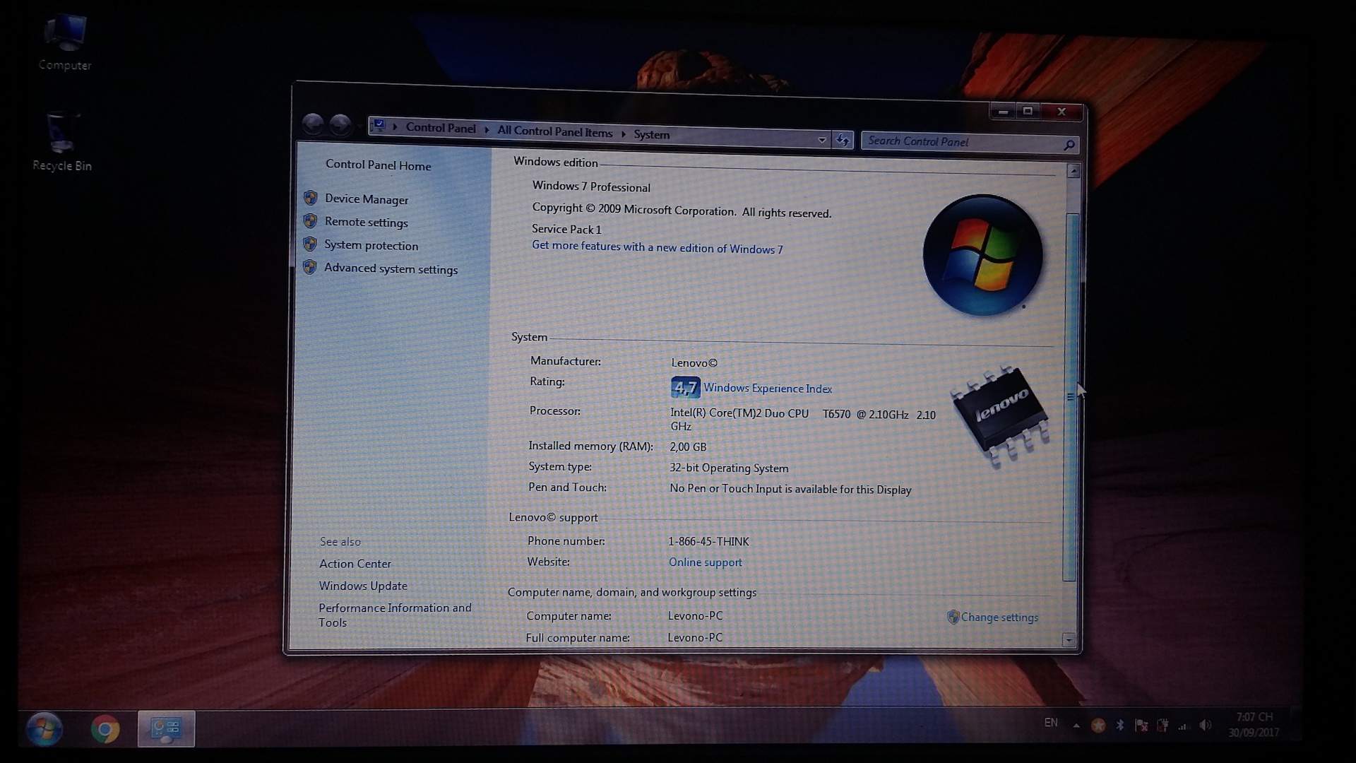 - CPU: Core 2 Duos T6570, 2.10 GHz