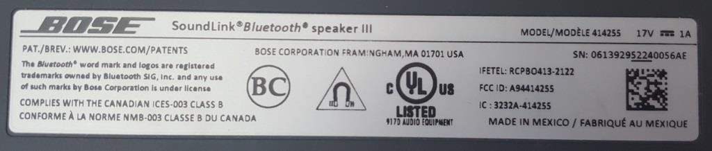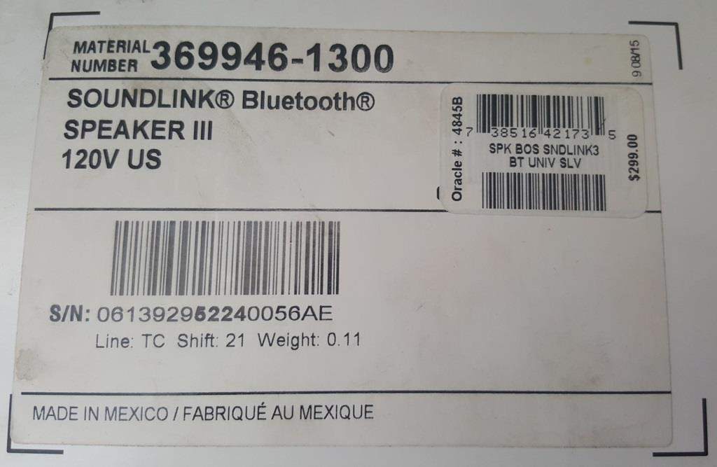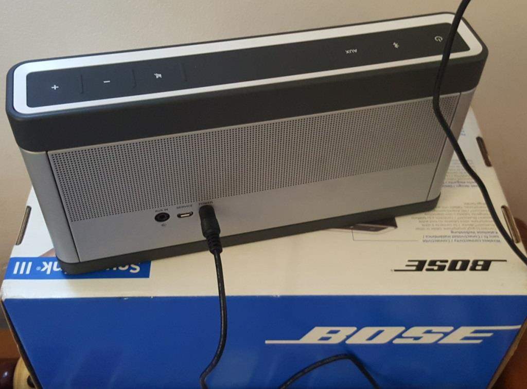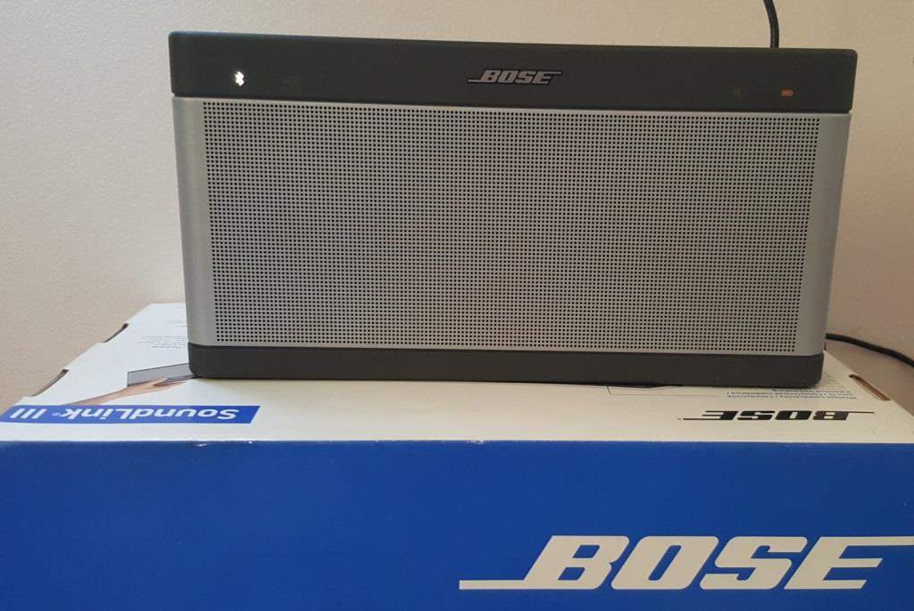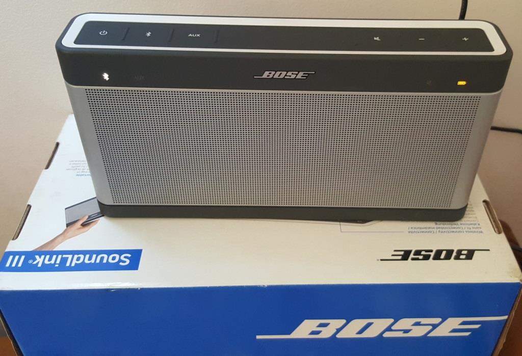 Mình cần bán loa bluetooth Bose Soundlink III, fullbox, hộp trùng serie với loa, made in Mexico, loa mới đẹp, pin lâu, âm bass sâu. Kết nối bluetooth và giắc 3.5.