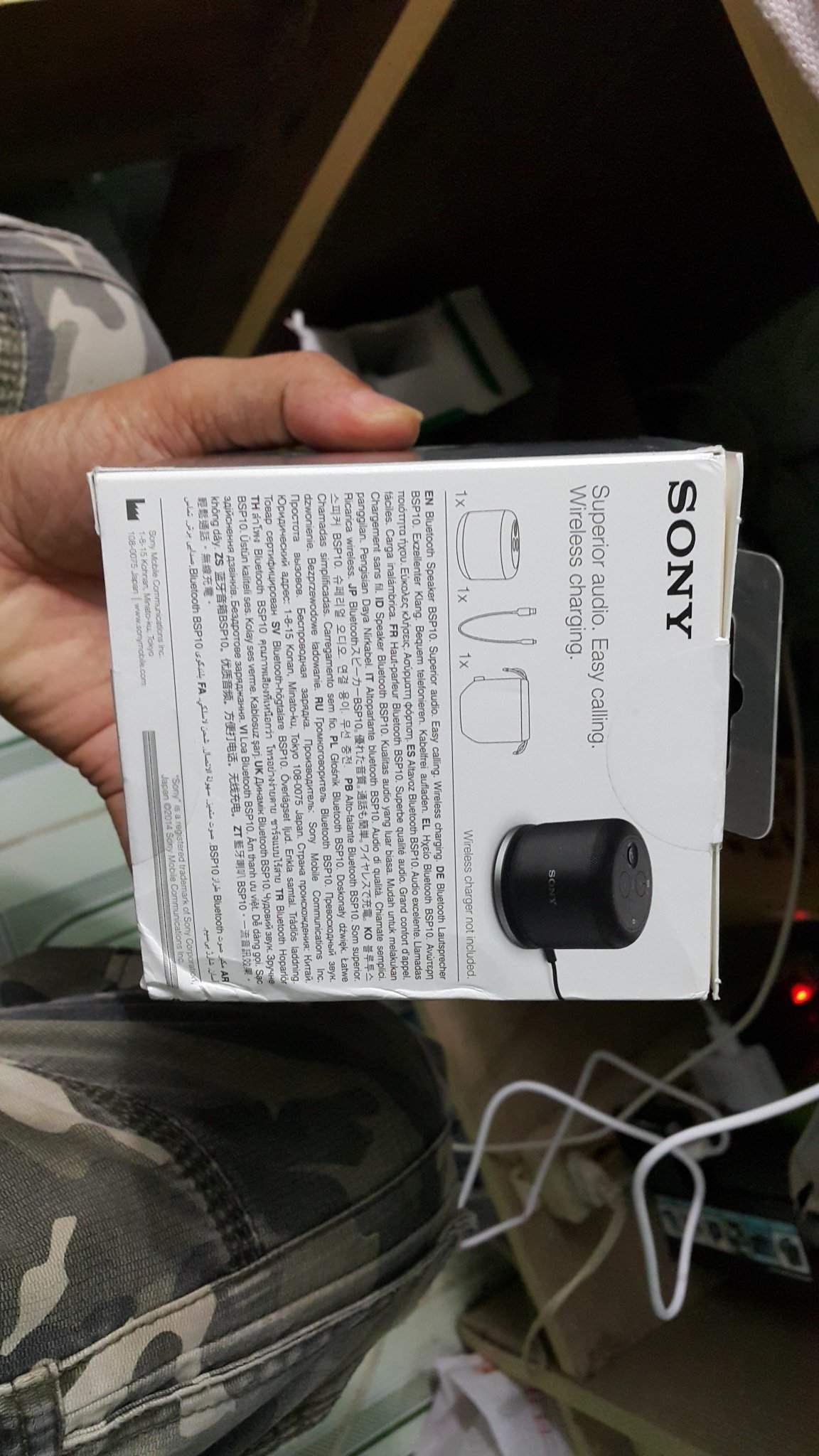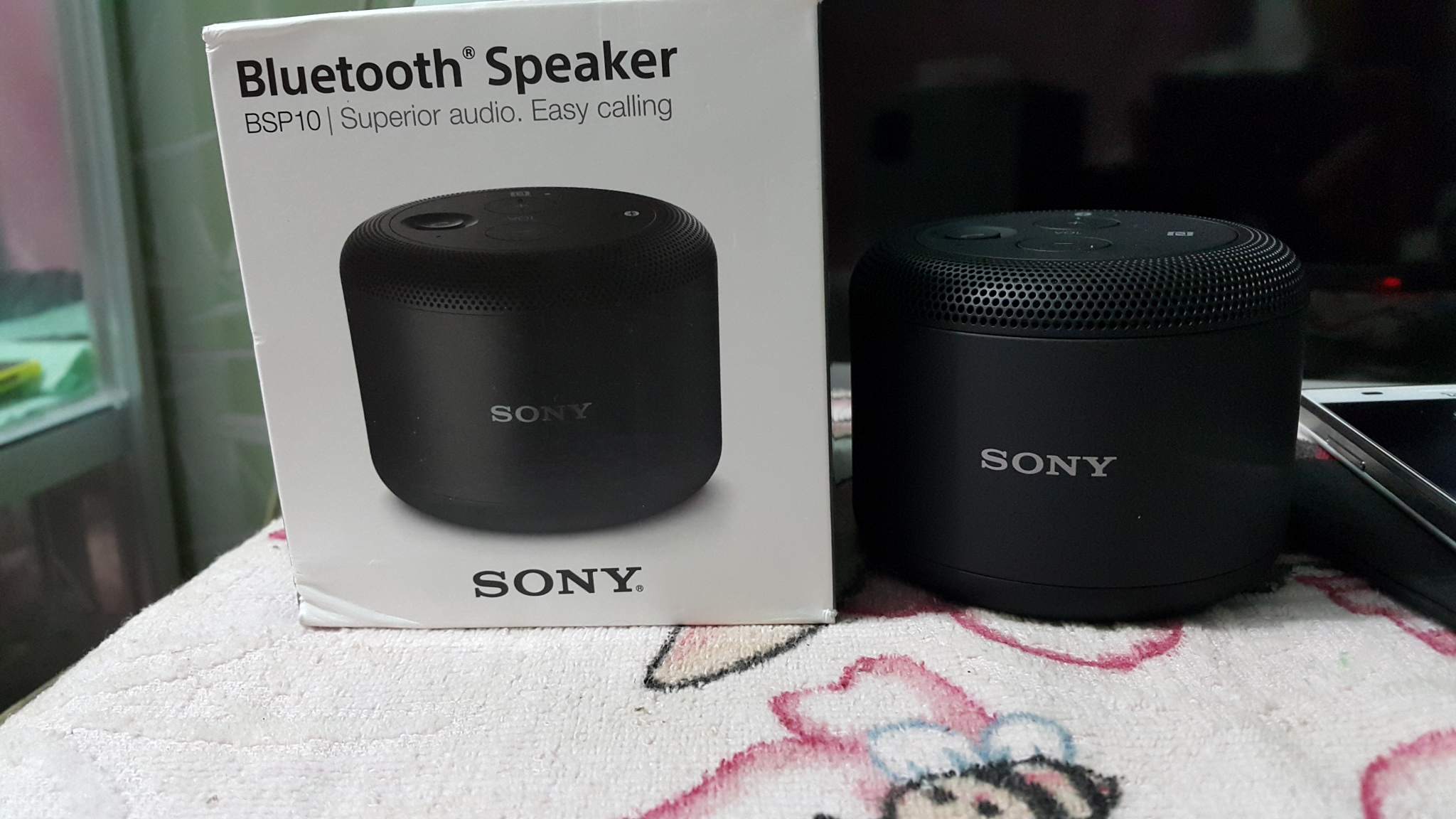 Quà tặng ko xài tới nên bán cho ai cần, loa Sony BSP10 thiết kế đẹp, cực kỳ nhỏ gọn, âm thanh mạnh mẽ trầm ấm với công suất tơi 12W, khả năng chống nước nhẹ, loa sạc qua cổng microUSB. Loa fullbox gồm loa, cáp USB, túi đựng, hộp, sách vỡ
