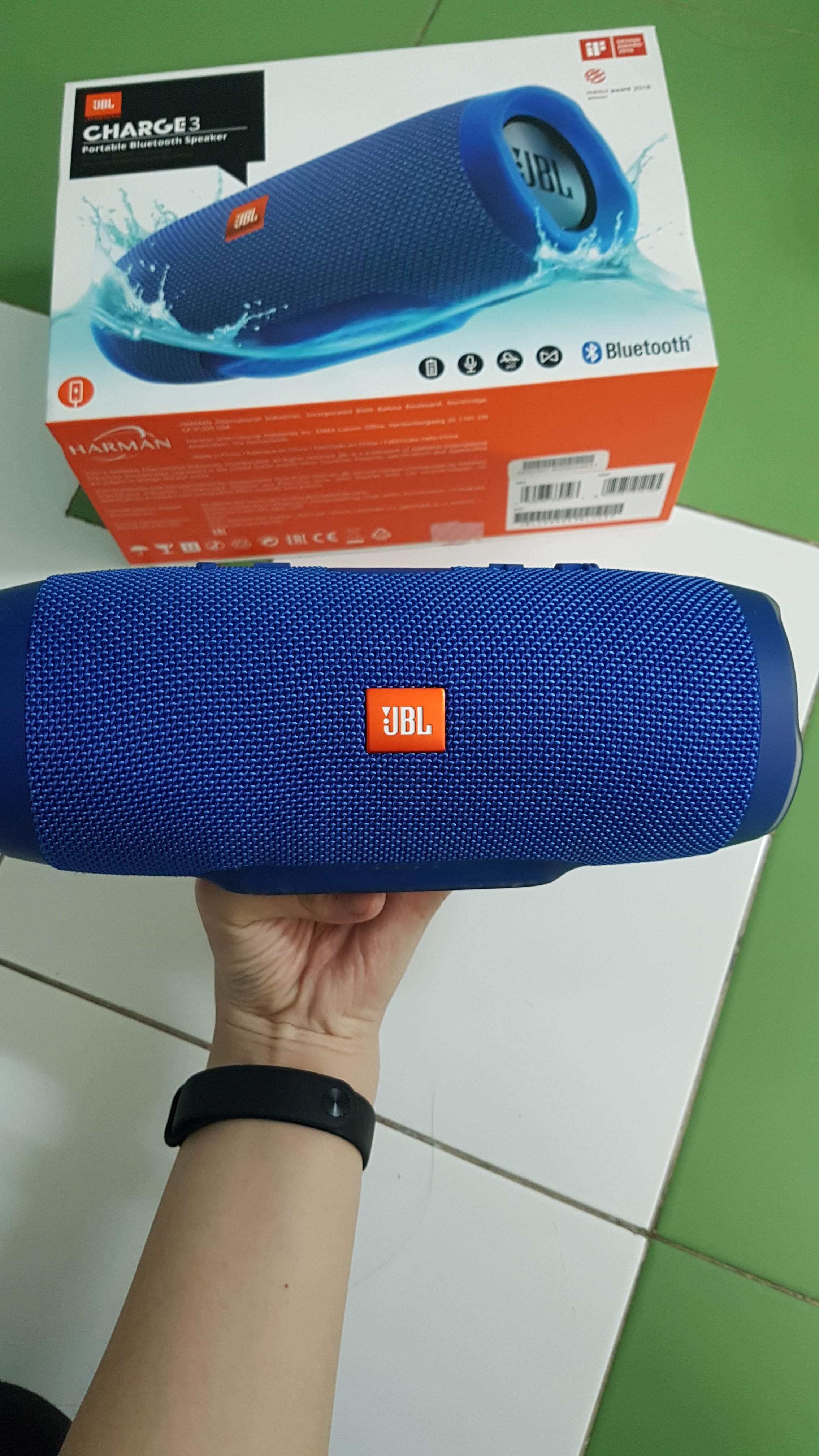 Cần bán 1 loa jbl change3 màu xanh fullbox mua mainguyen tháng 2 còn bh 11 tháng.