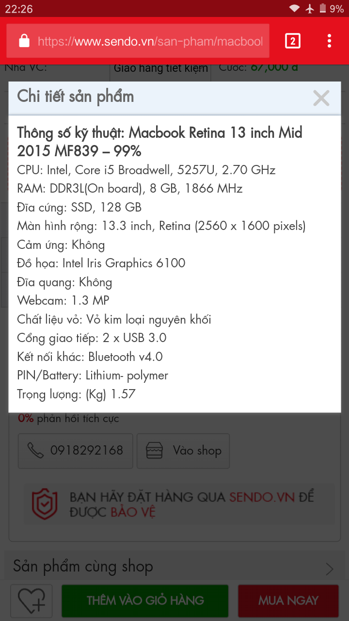 Lên đời nên cho ra đi MacBook Pro 13" 2015 cấu hình Core ị5 Ram 8Gb SSD 128. Tình trạng likenew fullbox không sức mẻ trầy trụa, hết bh Apple nhưng còn bảo hành cửa hàng tới tháng 4/2017.