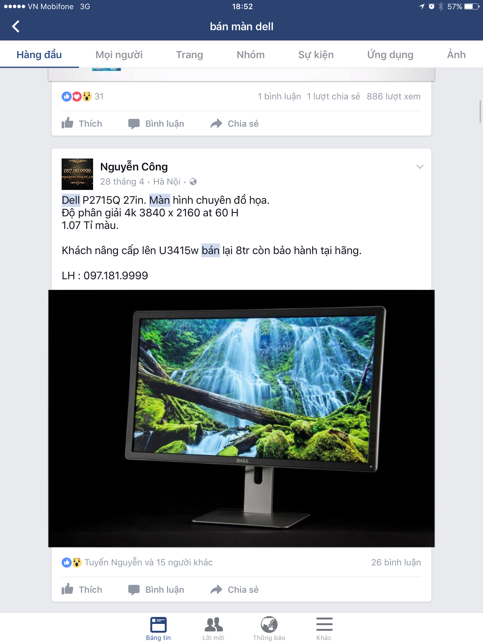 HN_Cần bán màn hình Dell 27"P2715Q Ultra HD 4K. cực nét, chân điều chỉnh cực tiện.