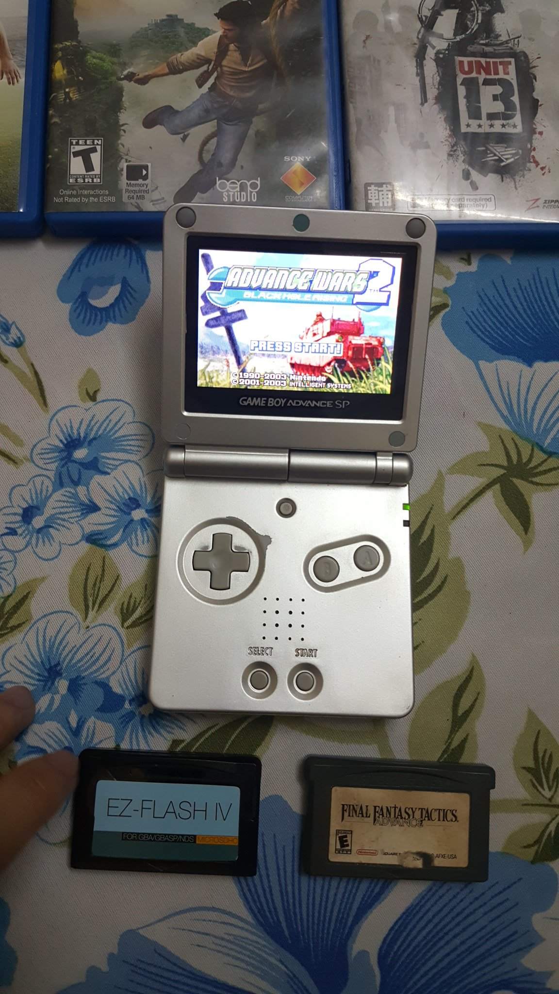 Bán 1 em gameboy sp 4 đèn chuẩn ko trắng góc nút nảy chơi ngon lành. Kèm thẻ ez flashcard cop fullgame gba chơi tẹt Bán 1tr250 ko fix liên hệ Khánh XXX