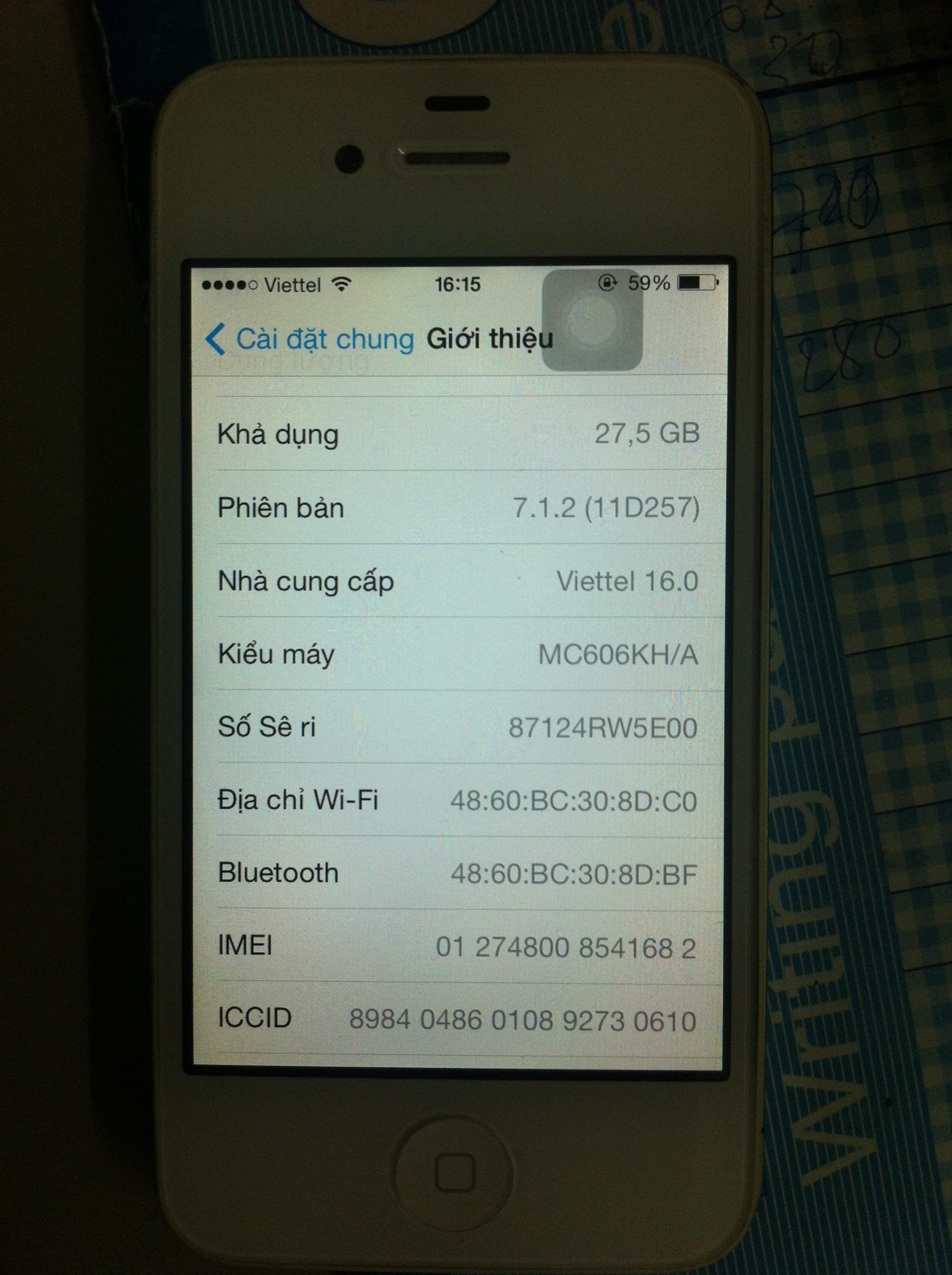 Ông a cho e con ip4 32G trắng ..quốc tế .cần tiền nên bán Máy dùng bt..có nút home là hơm chập chơn ấn mạnh là đc Fix cho bác nao nhiệt tình Máy chạy ios7 nhưng e luu shsh 6.1.2 ai thích thì ve