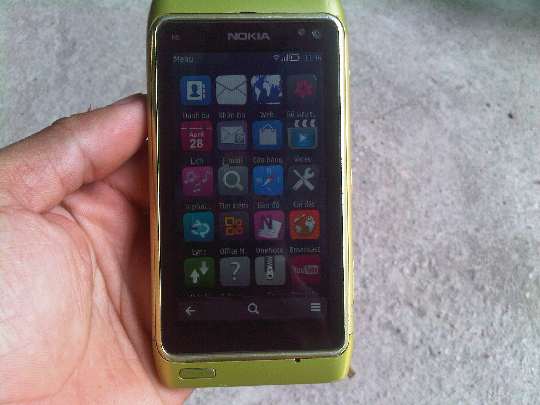 mình có 1 em N8 máy màu xanh cốm hình thức như trong ảnh.nghe gọi ngon lành,3g wifi vù vù.máy gồm: thân máy+pin+sạc+cáp