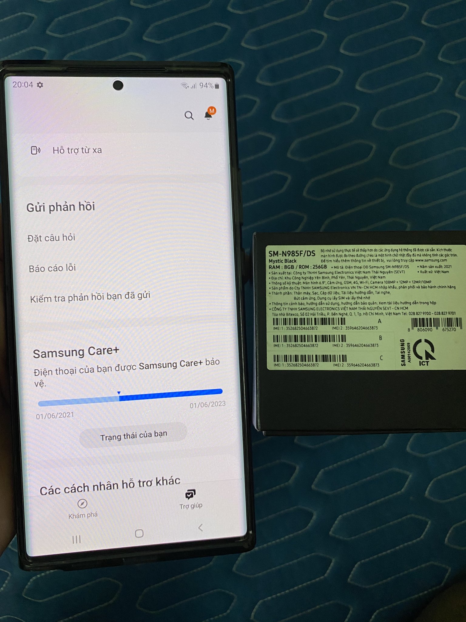 Mình Bán Note 20 Ultra Đen Ram 8/256GB 2 Sim, Máy có mua thêm gói Care+ bảo hành rơi vỡ vào nước tới tháng 6/2023, Fullbox Đủ Hộp Phụ Kiện Zin,Chính Hãng SSVN,Đẹp 99,99% dán màn zin còn chưa bóc.