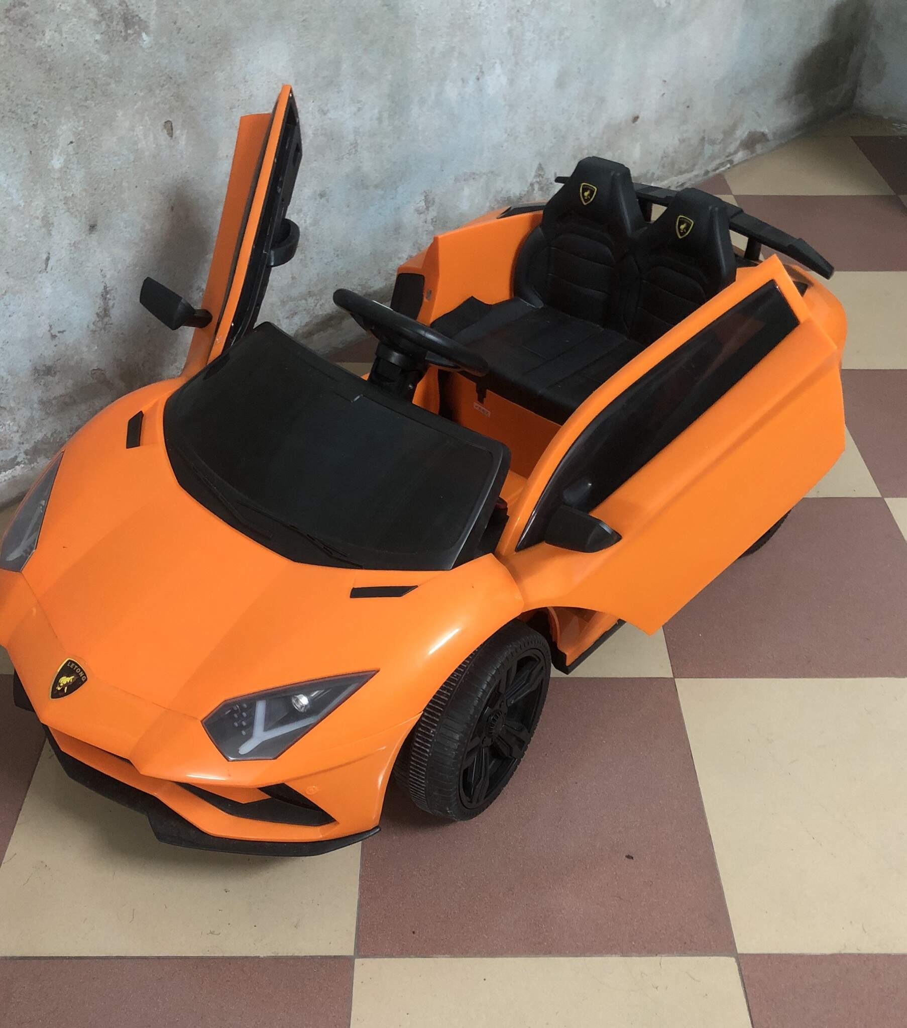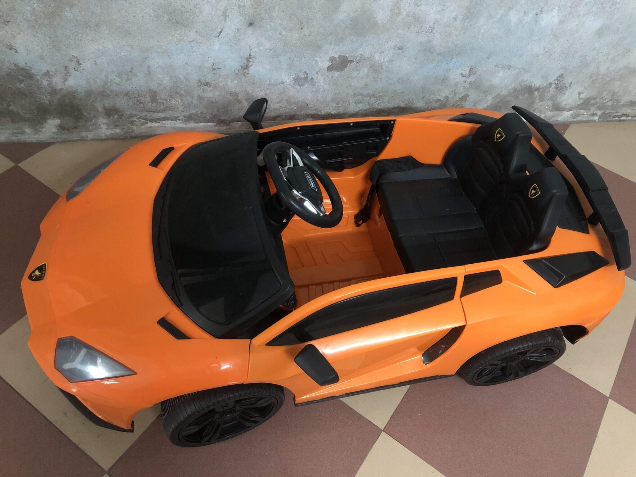 Mua về nhưng bé nhà mình không thích chơi nên bán lại cho bố mẹ nào có nhu cầu. Xe ô tô điện trẻ em kiểu Lamborghini màu cam rất đẹp, động cơ siêu khoẻ, xe có chế độ nghe nhạc usb, rung, gầm rú tạo cảm giác như thật. Xe này mua ở babimart giá 2,2 triệu, mới toanh vì bé nhà mình ngồi lên có 2,3 lần. Giá bán lại 1,6 triệu.
