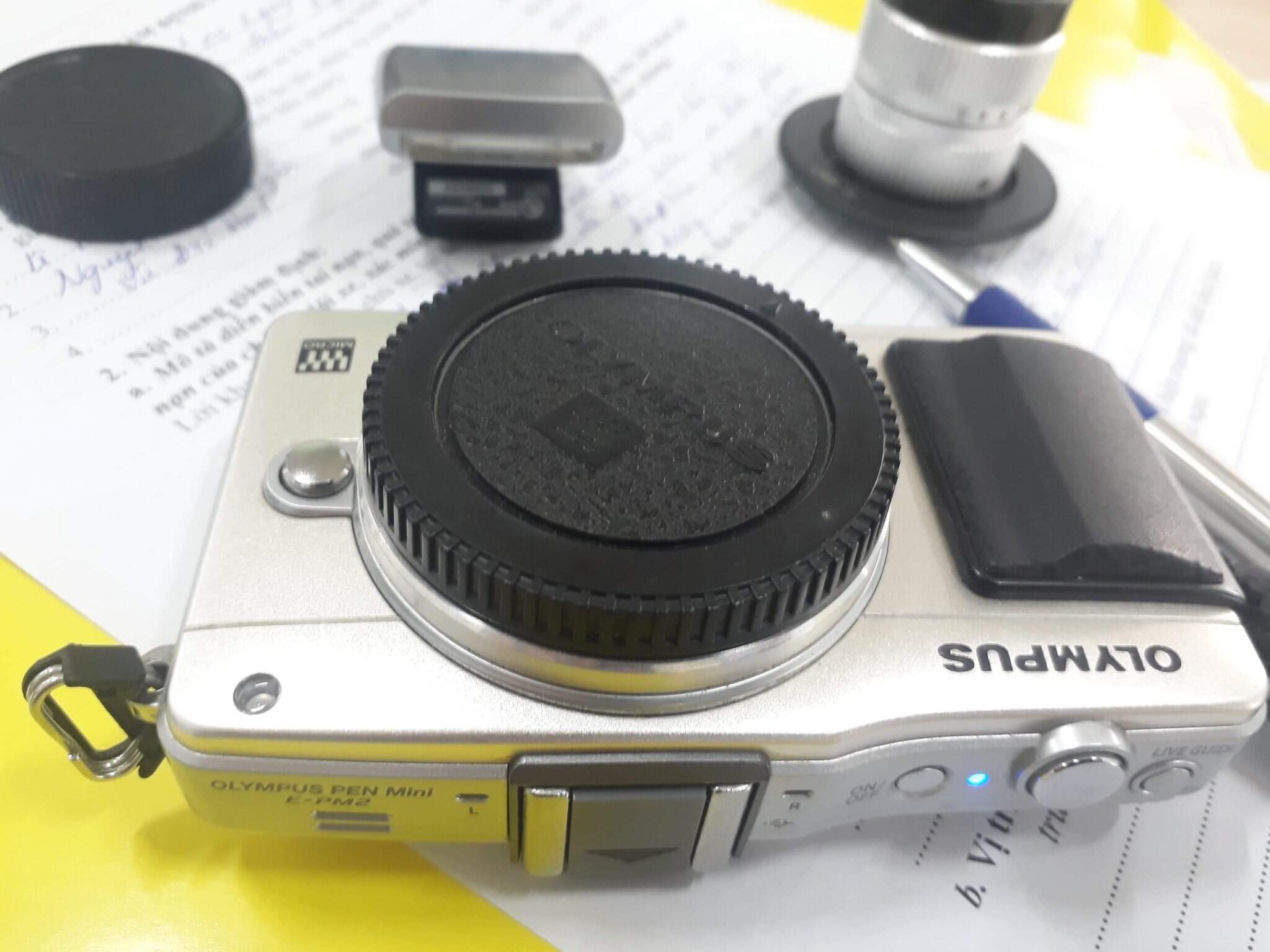 Dư dùng bán nhanh máy olympus epm2 kèm len cctv 35f1.4 Phụ kiện pin zin,xạc zin flash, túi đeo.