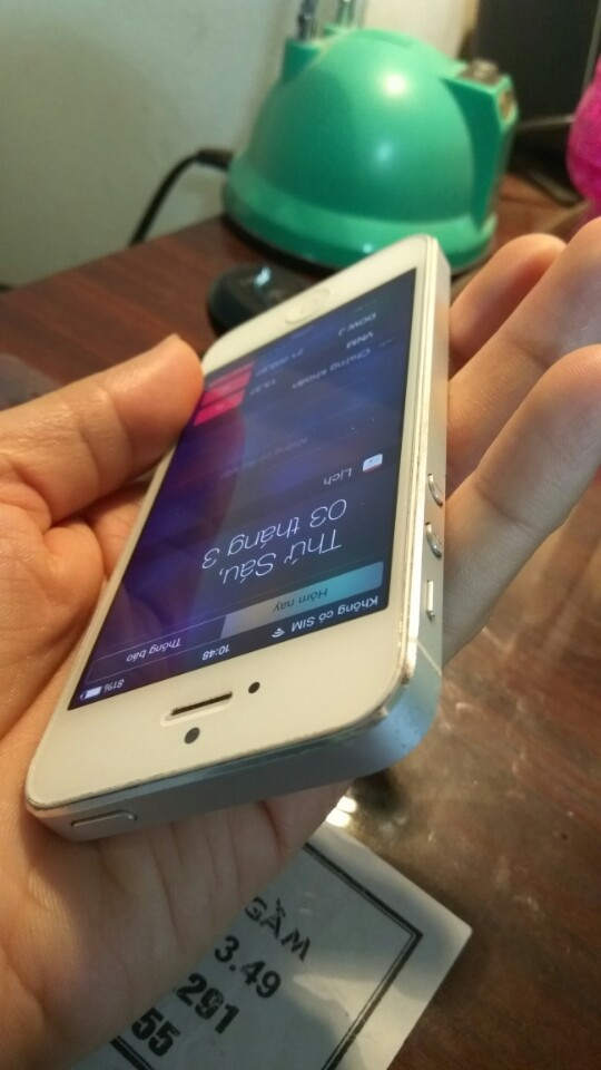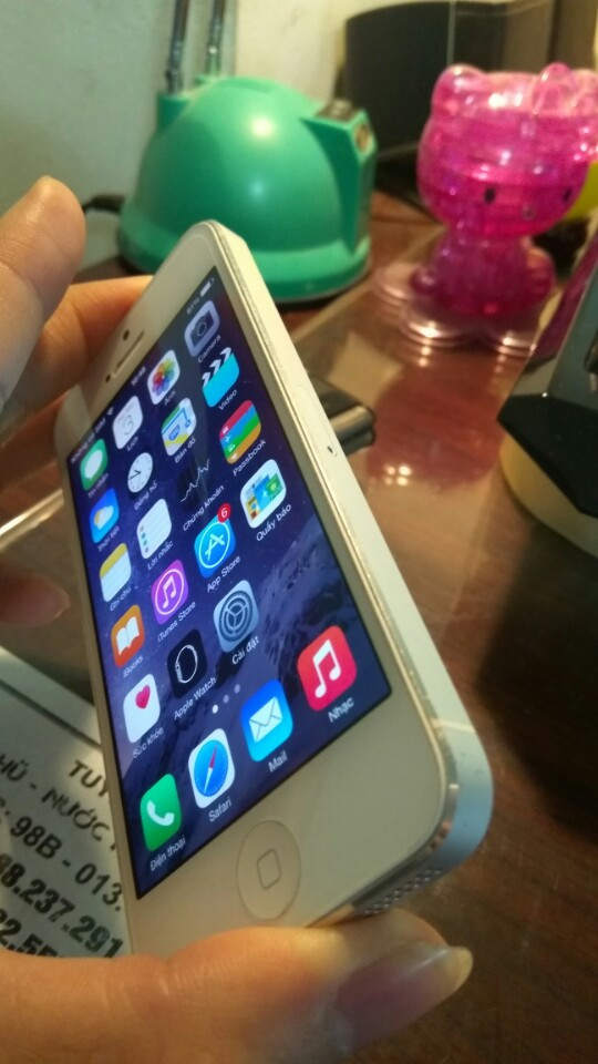 Iphone 5 lock màu trắng bản 16GB, ios 8.2.1. Máy đẹp, phụ kiện có cáp, sim ghép. Giá 1t7.