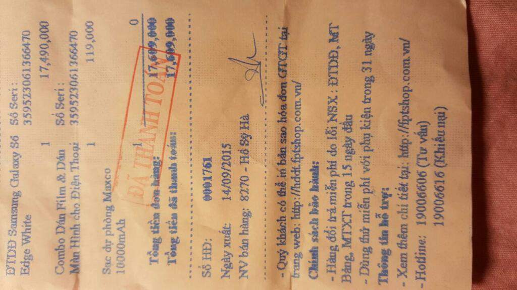 Đổi sang 6s lên dư con s6 edge này.. bán cho ai có nhu cầu.. hàng chính hãng fpt. Bảo hàng đến hết ngày 13/09/2016..Còn nguyên hộp. Hóa đơn mua hàng. Phụ kiện zin theo máy... tặng kèm ốp hoco... lấy sạc không dây thêm 200k.