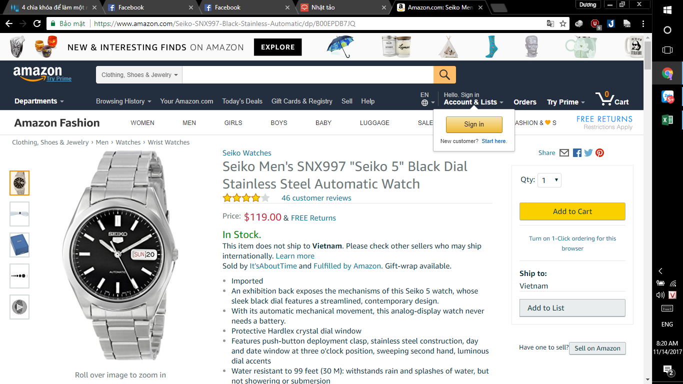 Bán seiko snx997 xách tay amazon mặt trước xước dăm ( soi kỹ sẽ thấy). Máy cơ dùng ổn định mượt mà như vừa đập hộp, đường kính mặt 40mm. Đang onweb 120$ (về tay sẽ rơi vào tầm 3 triệu).Ngoài giờ hành chính mình ở Dương Đình Nghệ, trong giờ mình ở Lê Văn Lương. Mua bán tại nhà cho yên tâm.