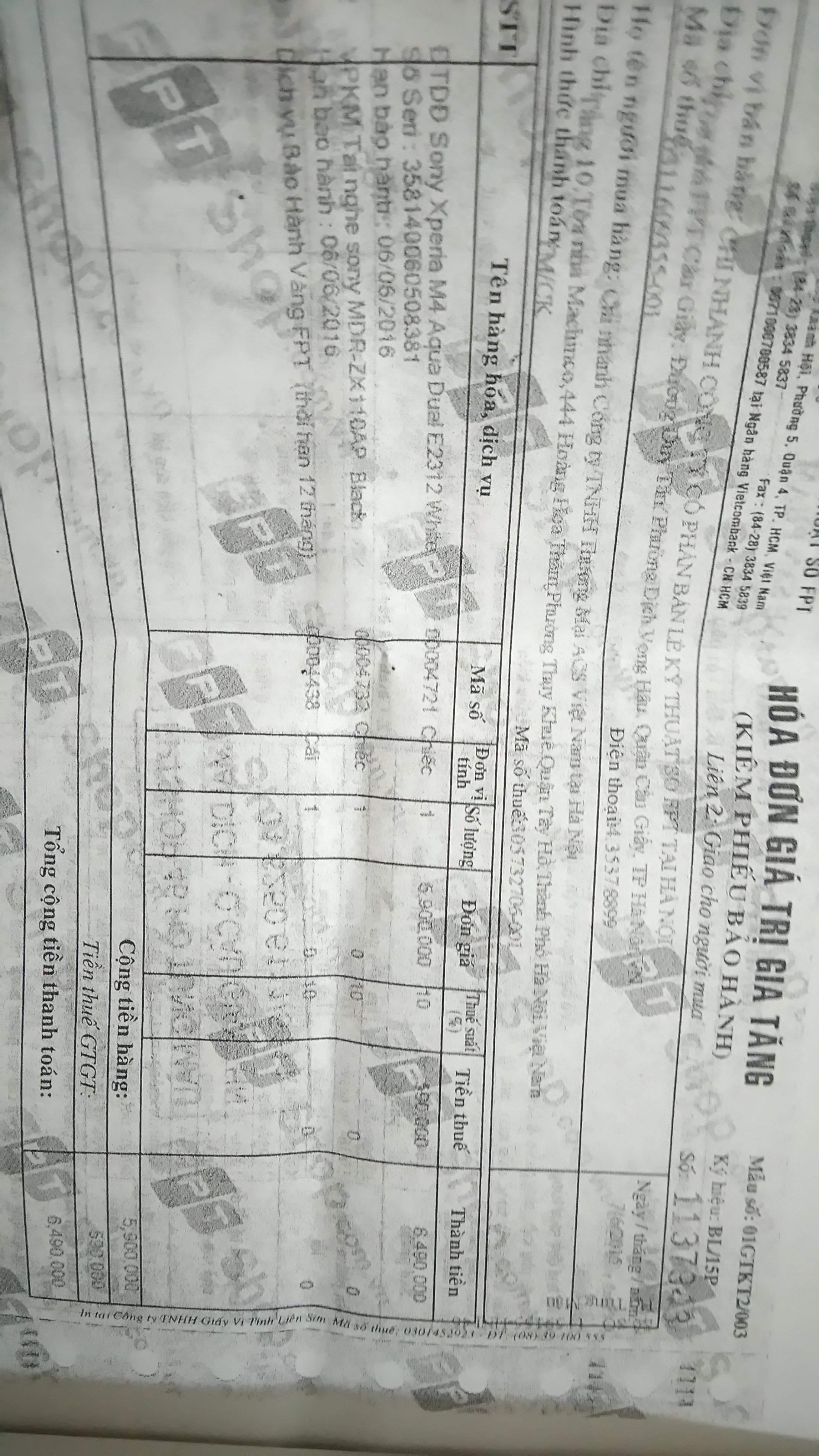 Mua tại FPTSHOP Hồ Tùng Mậu - Hà Nội ngày 07/06/2015