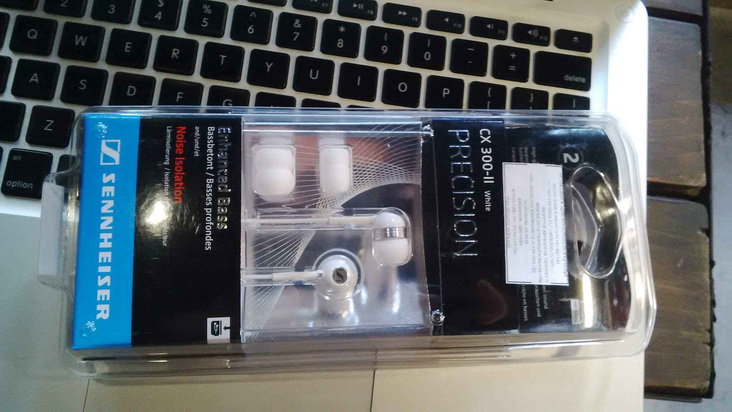 Em được tặng sinh nhật tai nghe Sennheiser CX300-ii, màu trắng nha.
