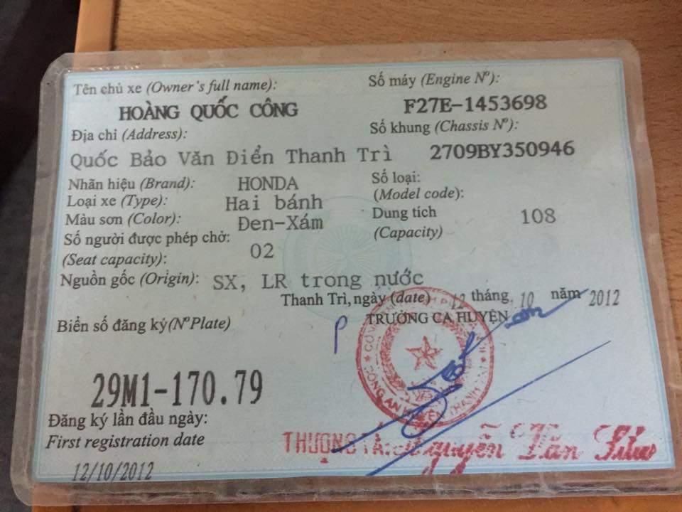dưới đây là đăng kí chính chủ của mình. xe thì đã dán nilong nên thì muốn làm mới thì quá đơn giản. đồ nhựa không vỡ, không xước sâu, chỉ xước qua lớp nilong.