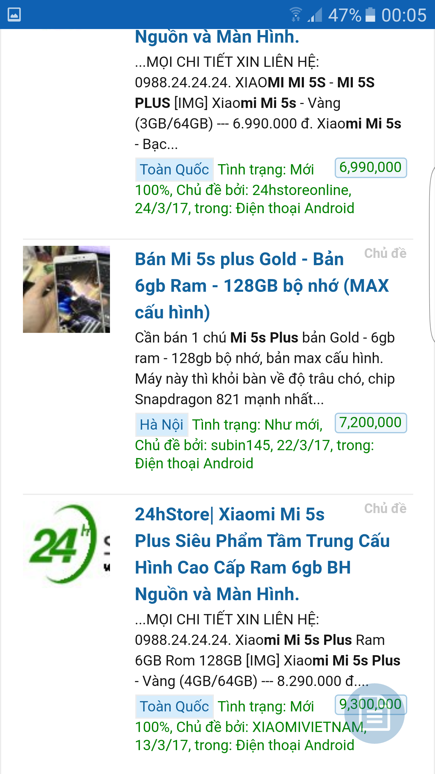 Bán xiao mi 5s plus mới mua đc 20 ngày bản max cấu hình 6gb/128 đã dán cường lực + ốp + bao da chưa kịp xài . Nợ ảnh tối up các bác nhé. Bảo hành còn 11 tháng nguồn và màn hình đến 3/2018. Máy đẹp leng kẻng. Bác nào mua sms và inbox e . E ko nhận gọi vì bận cv nhé. Có fix nhẹ cho bác nào nhiệt tình