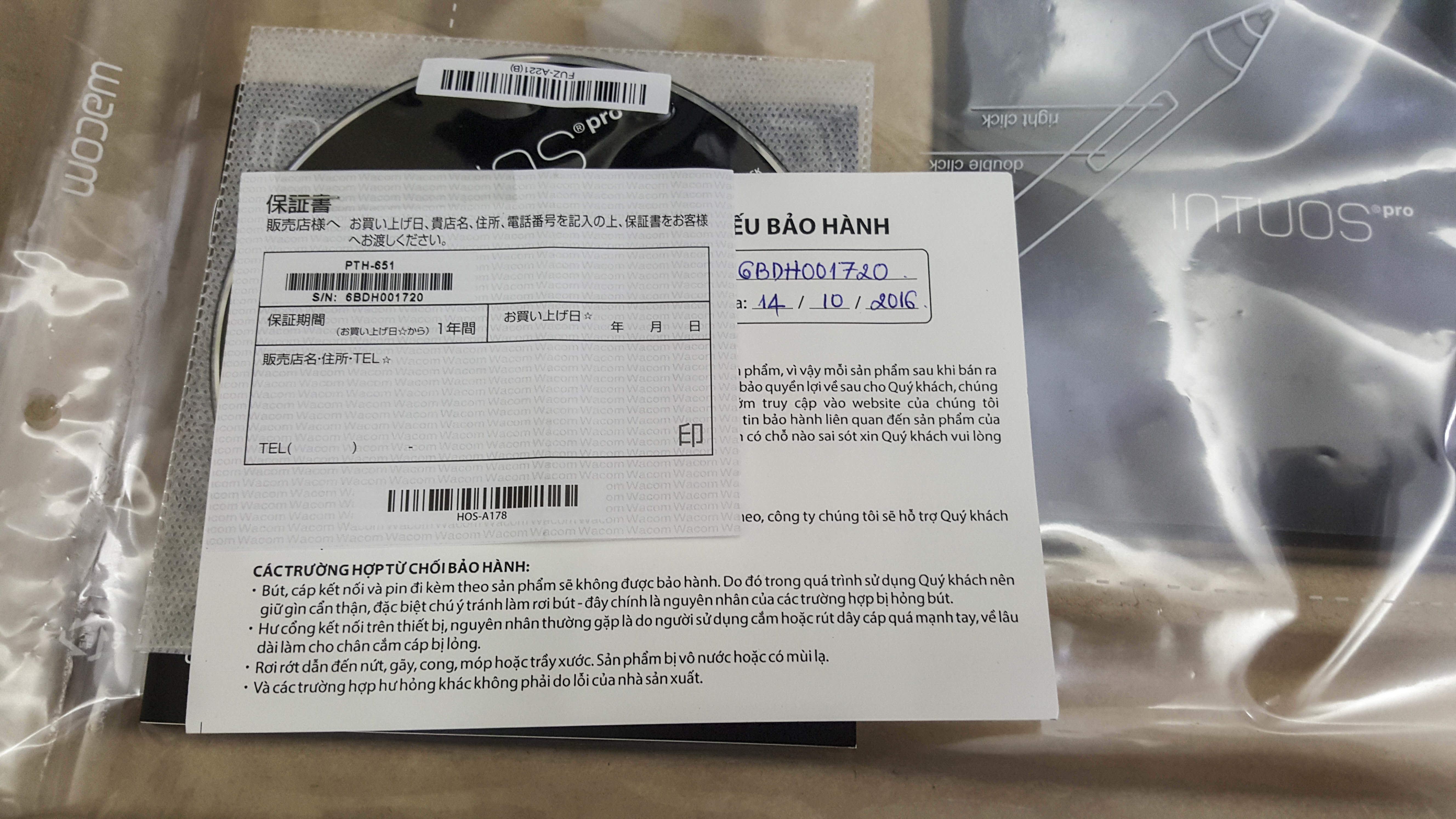 Có phiếu bảo hành chính hãng Wacom tại VN
