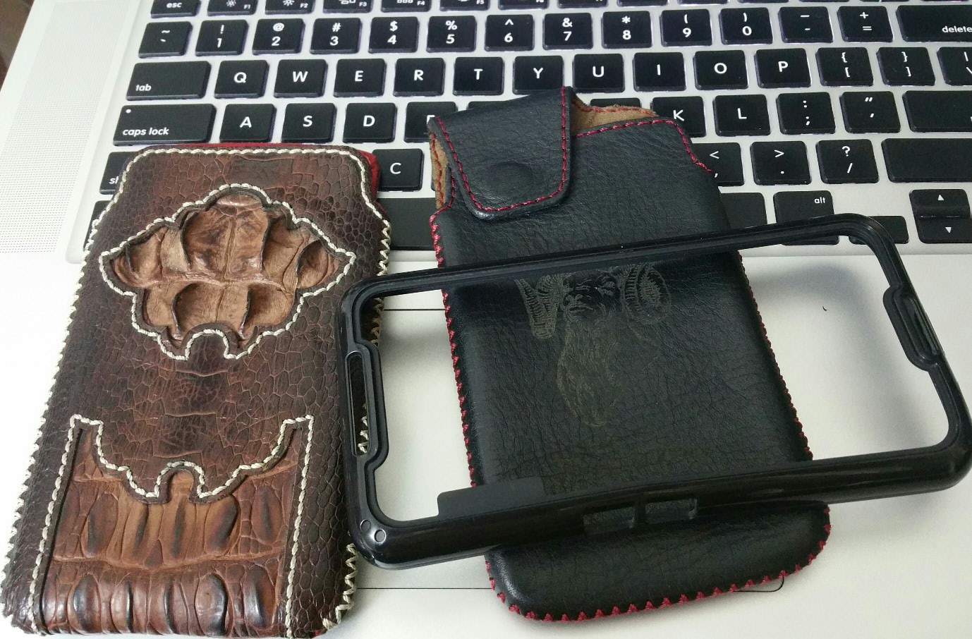 Mình có 01 ốp lưng, 1 bao da may bằng da đuôi cá sấu xịn (trước đặt hơn tr), 1 bao da may bằng da trăn (may 5-700 gì đó) bạn thích cái nào mình để lại ạ.