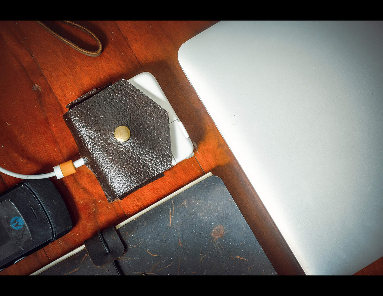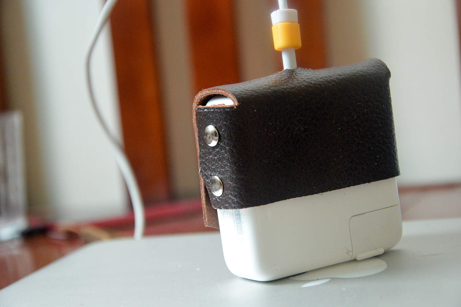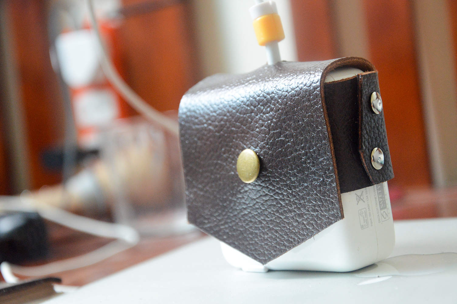 Bọc da (bao da) bằng da bò 100% cho sạc macbook.