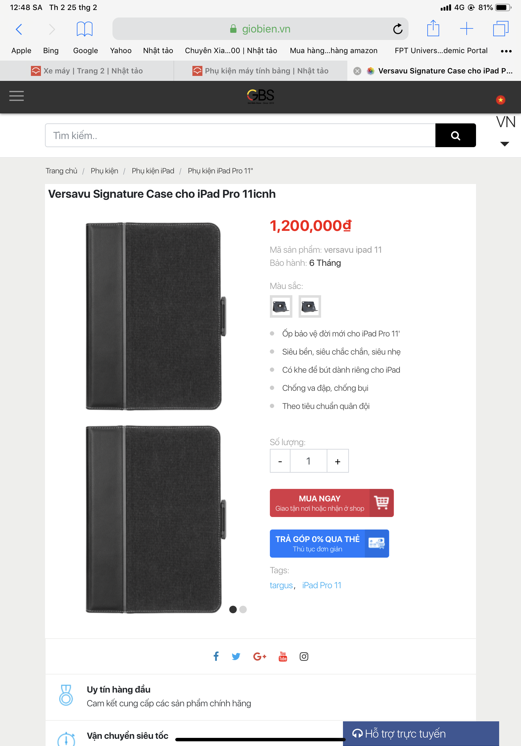 Bao Da Ipad pro 11inch : Targus Signature Blue & Dán da cho Apple pencil 2 ( da cóc nhật đỏ đen )